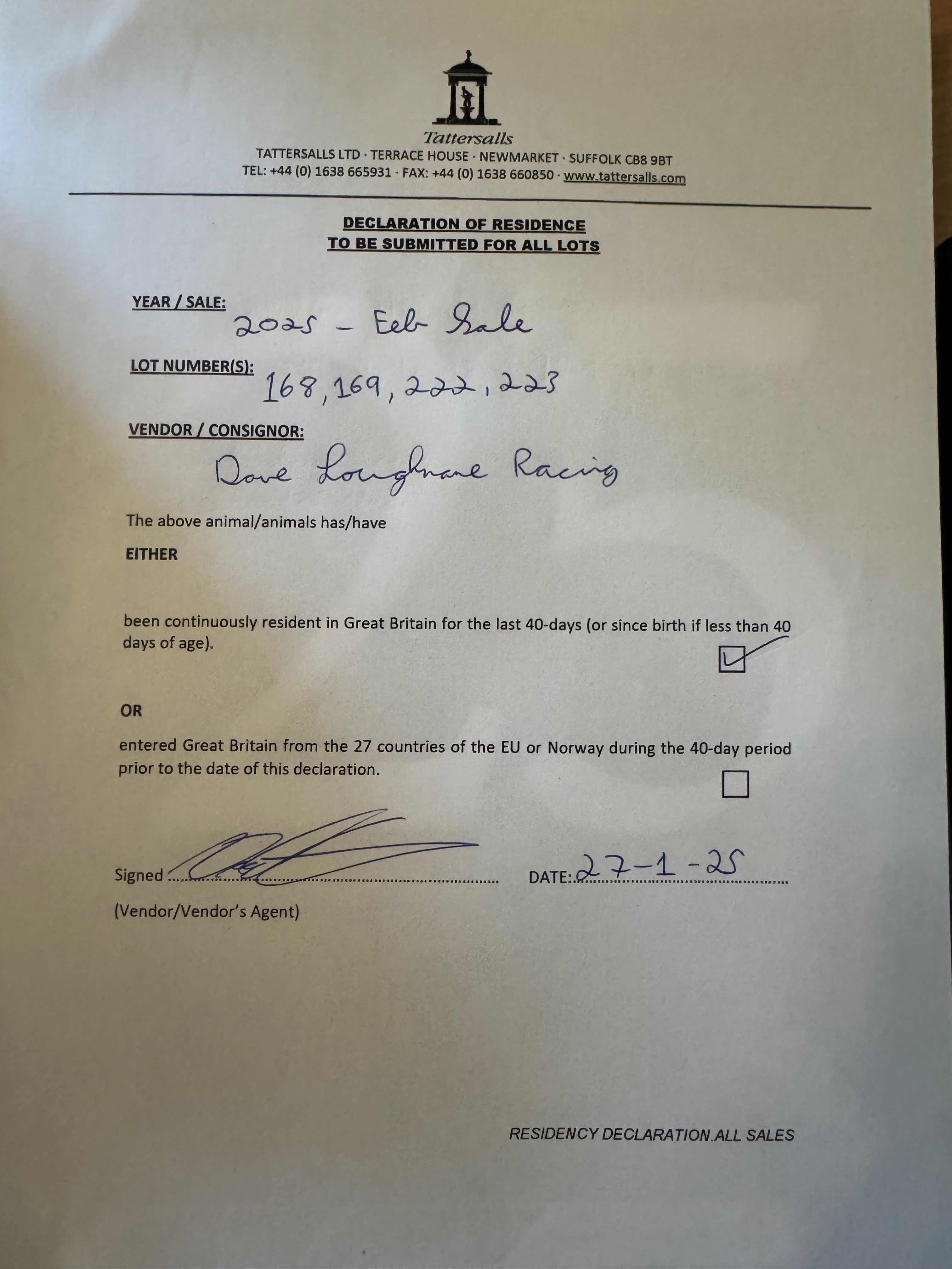 Consignor: David Loughnane Racing