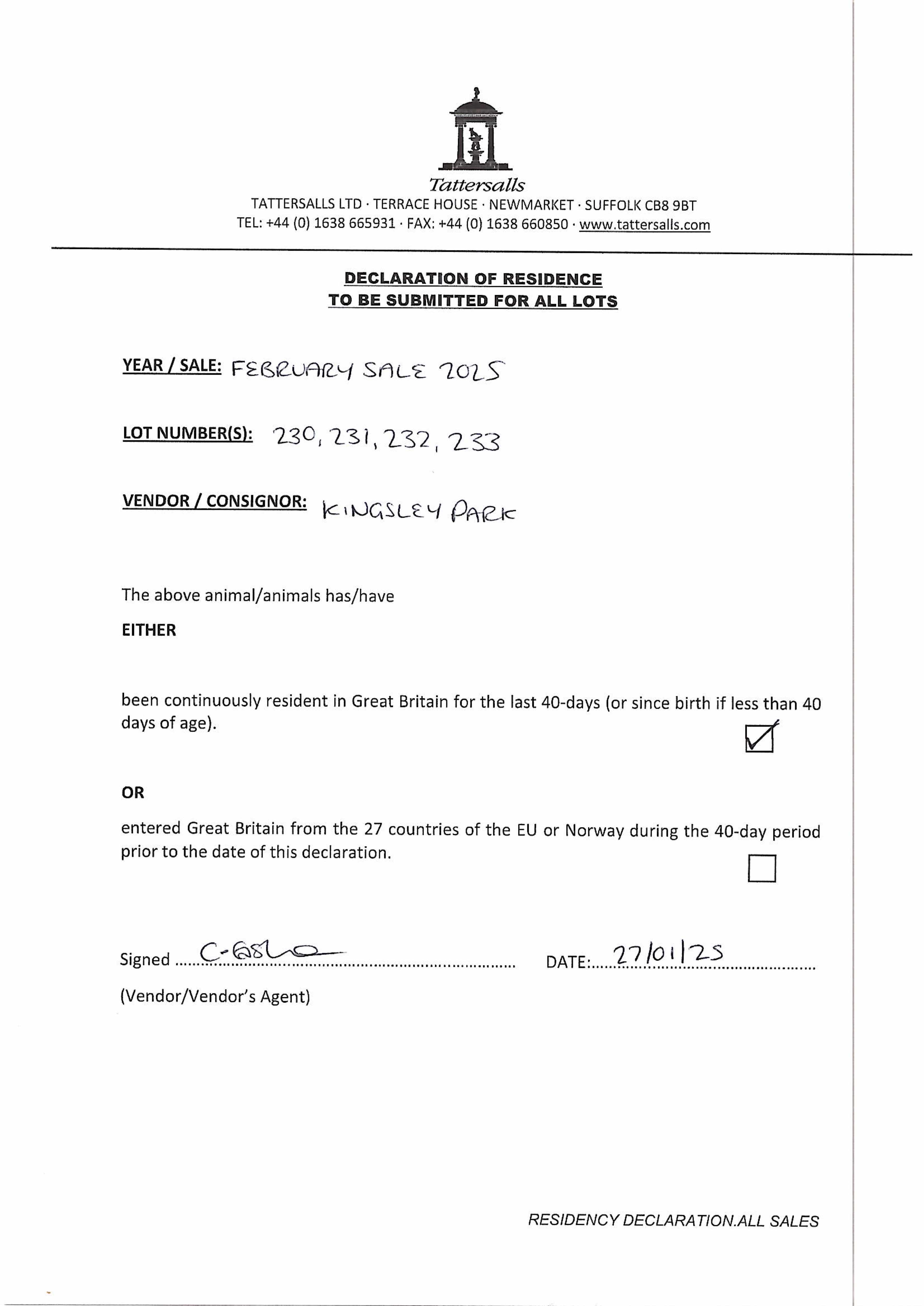 Consignor: Kingsley Park