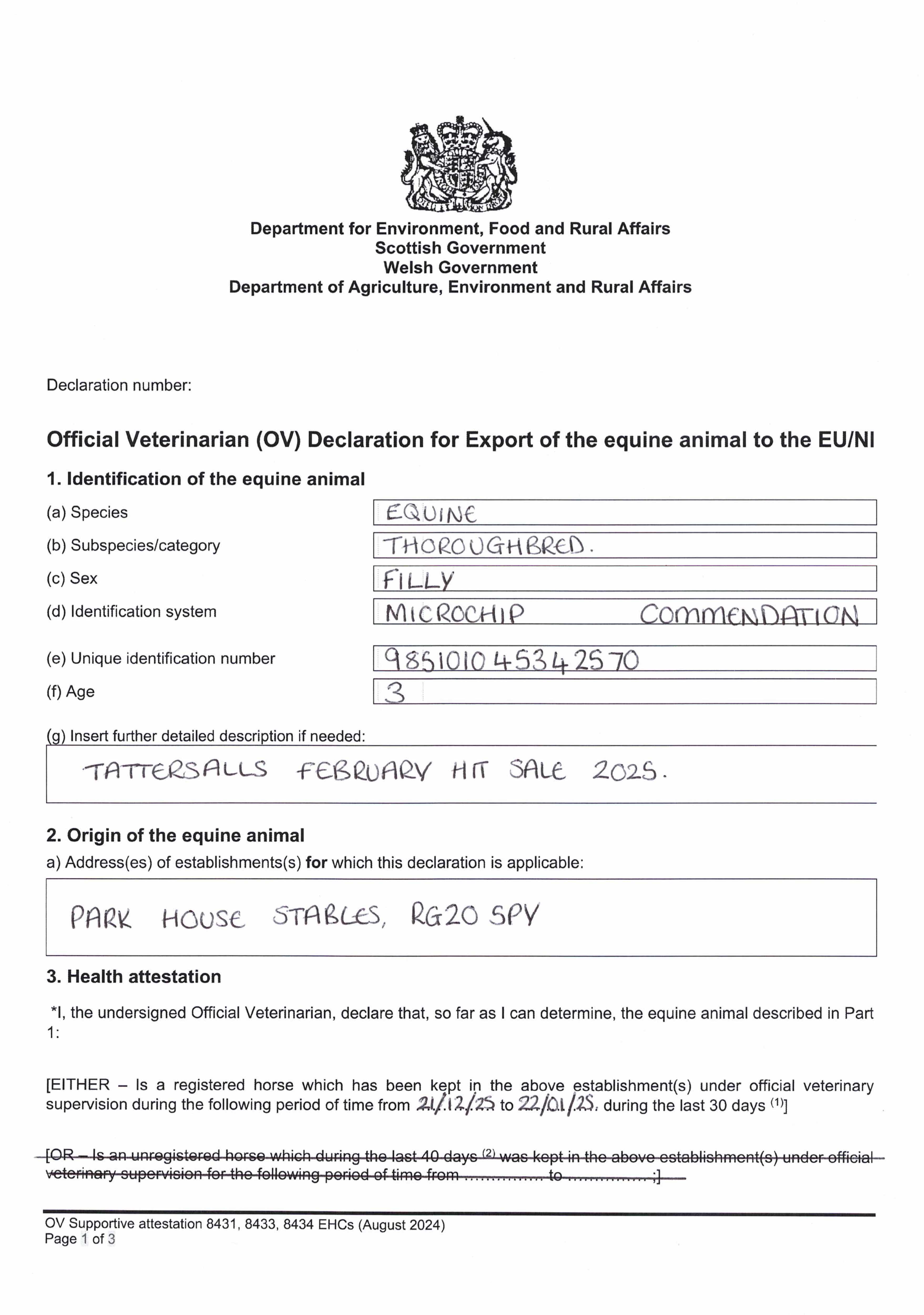 COMMENDATION (GB), ran a few times at 2 and 3 years, 2025.