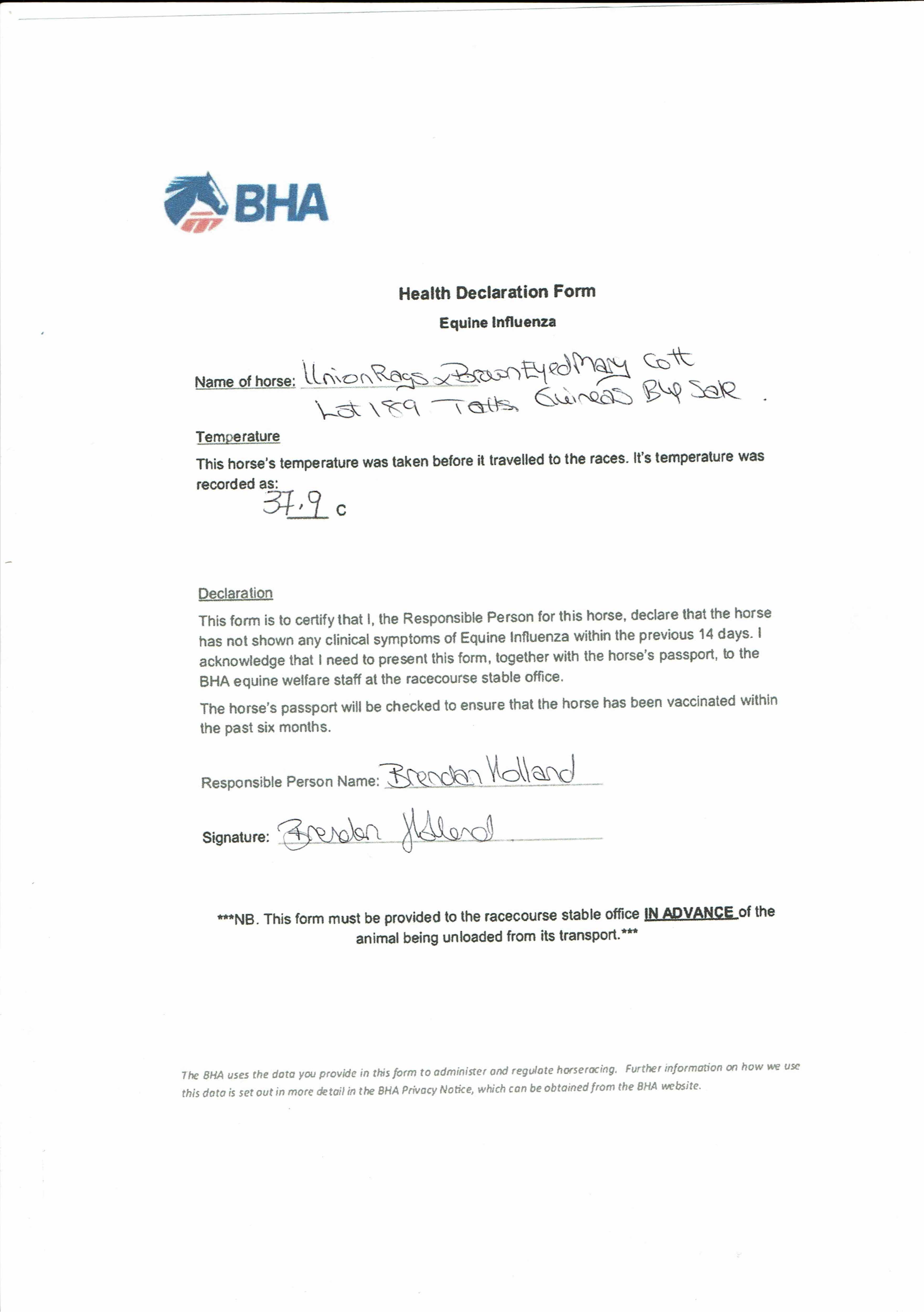 BHA Health Declaration