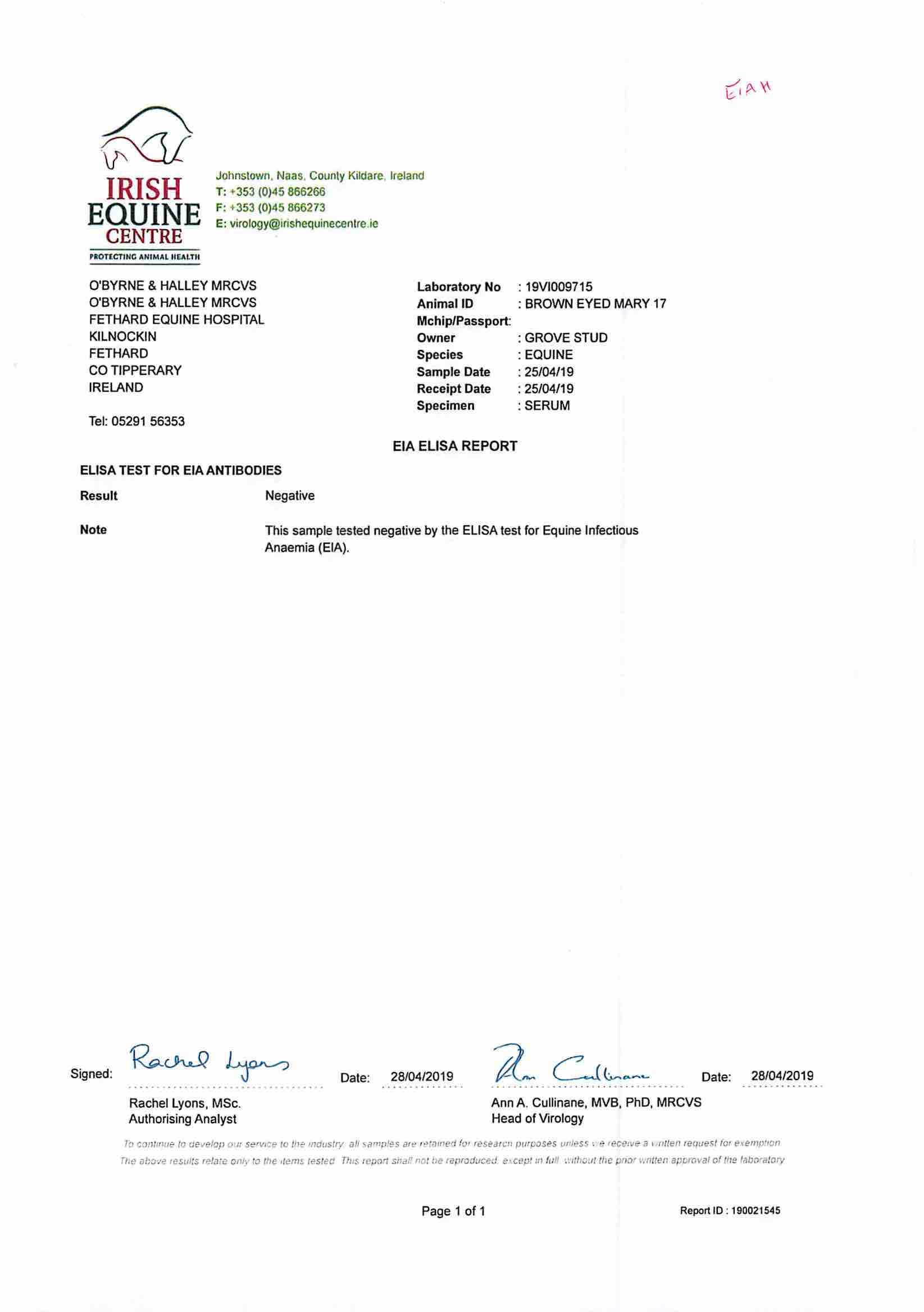 EIA Certificate