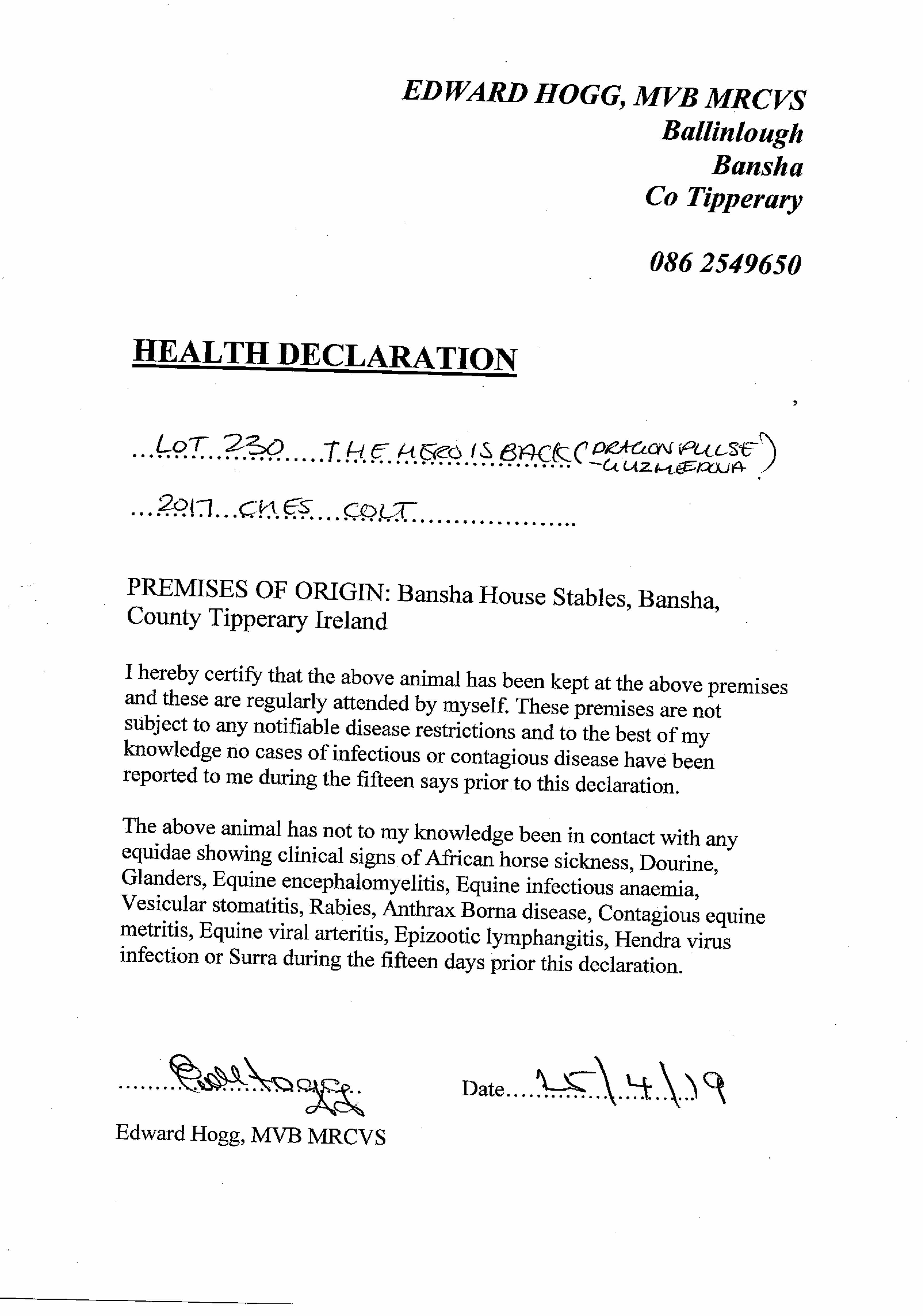 Health Certificate