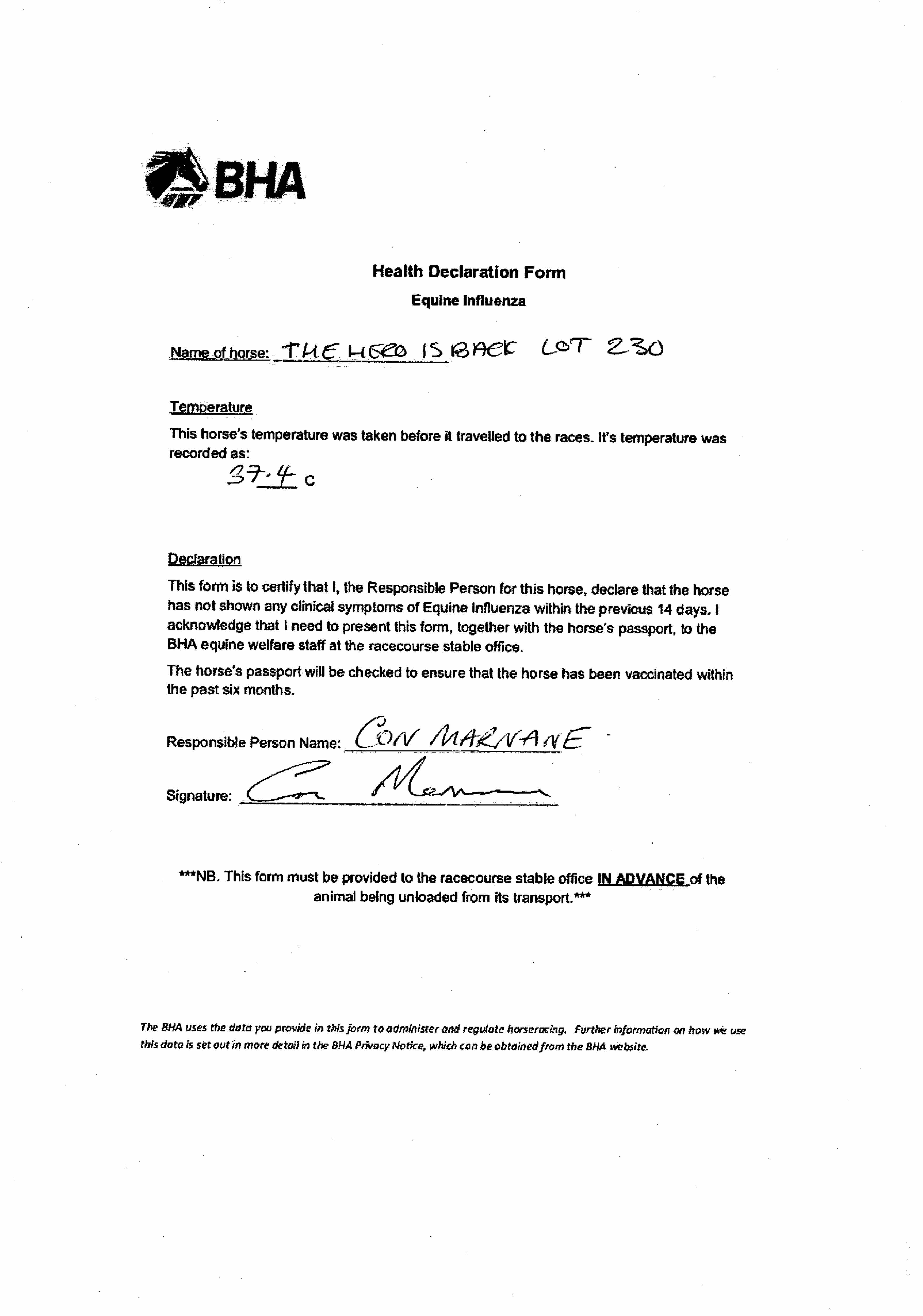 BHA Health Declaration