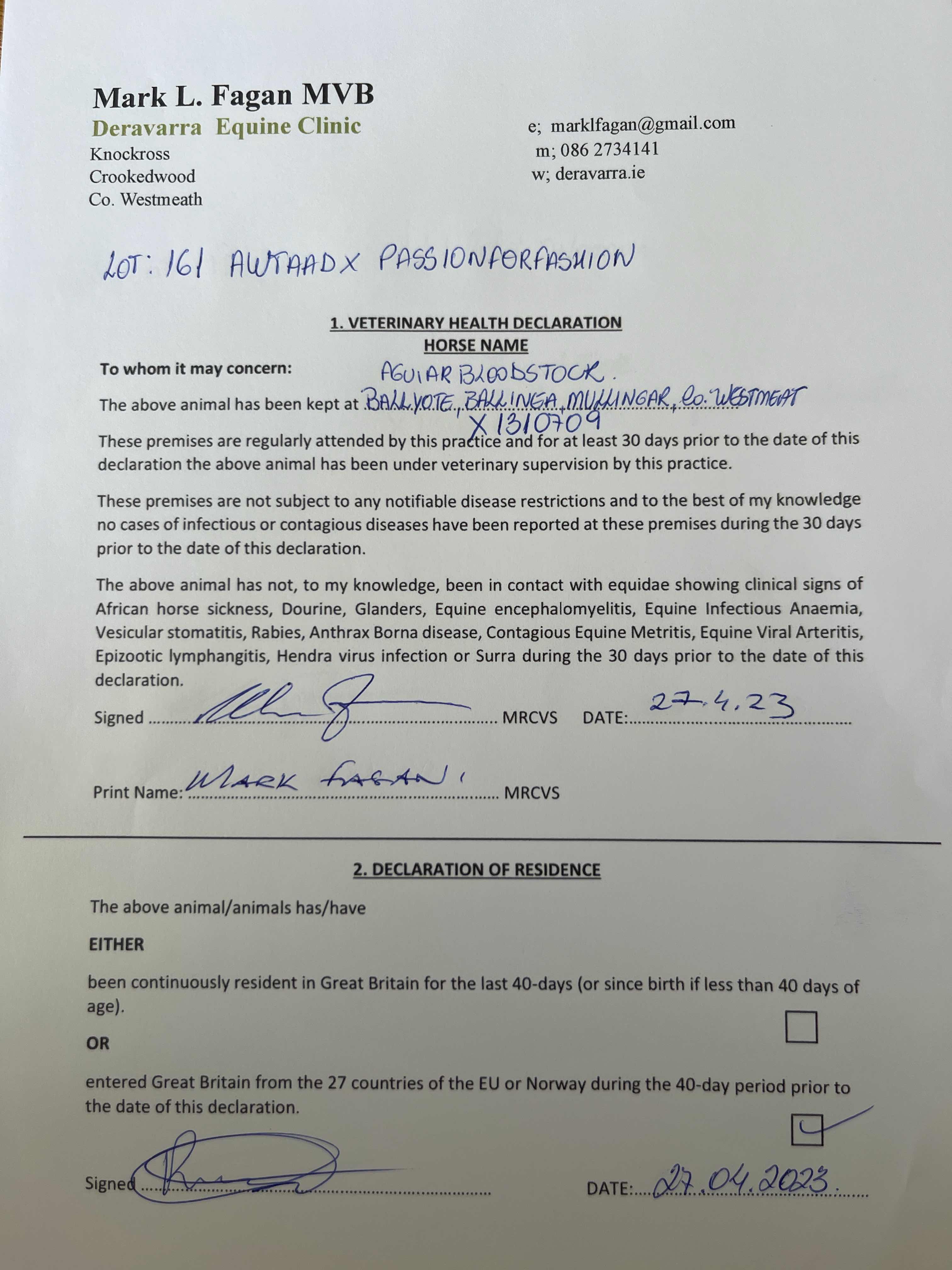 Consignor: Aguiar Bloodstock Ltd., Ireland