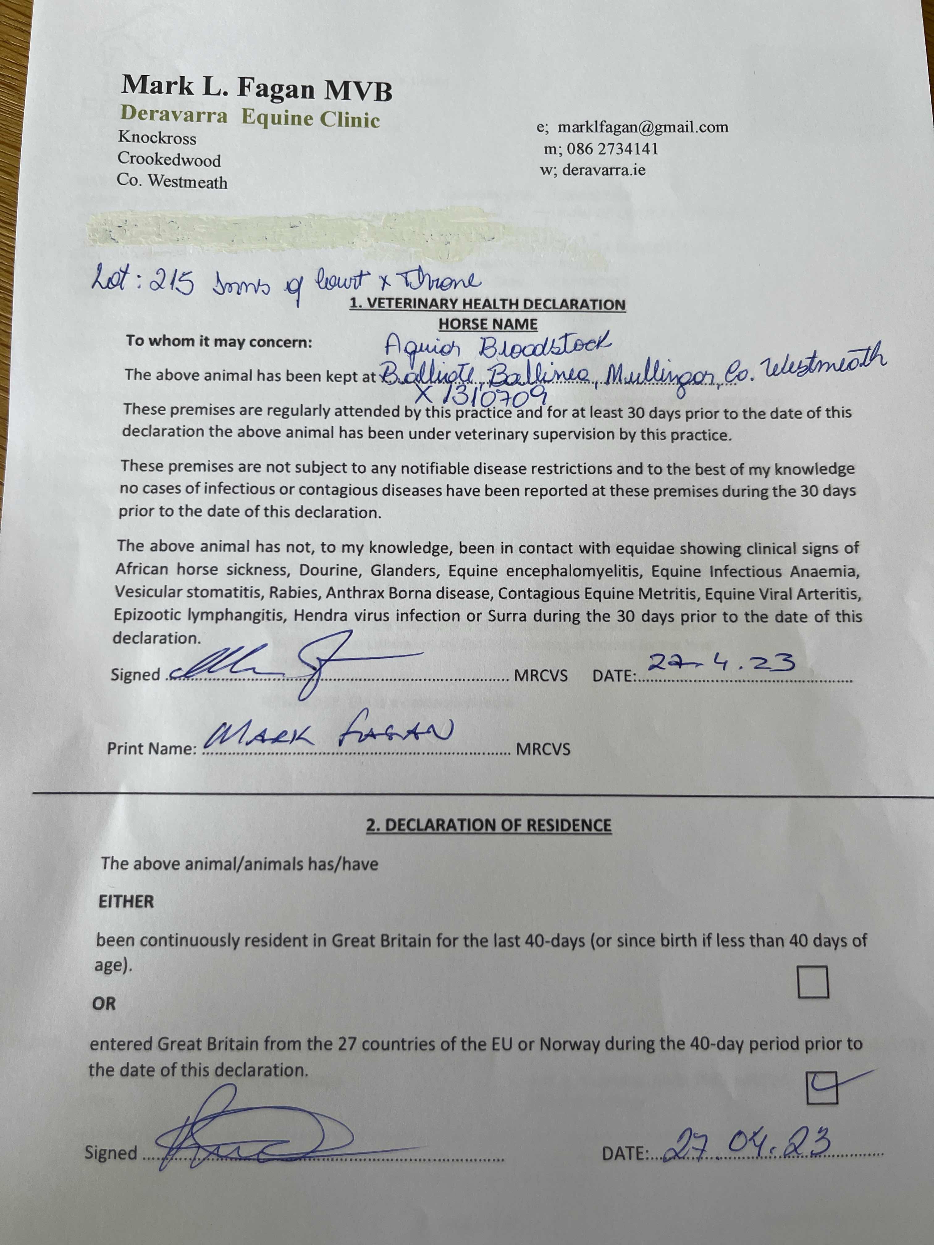 Consignor: Aguiar Bloodstock Ltd., Ireland