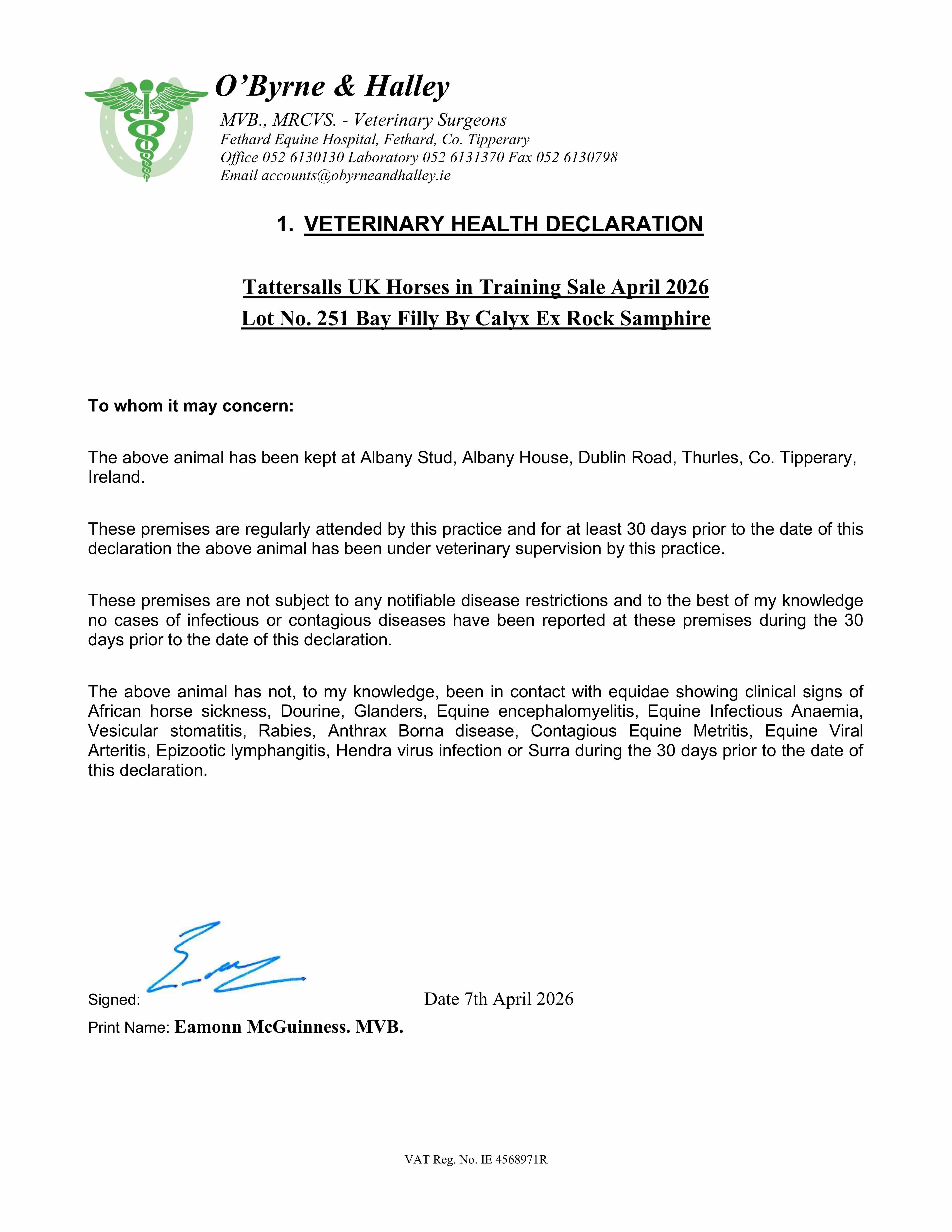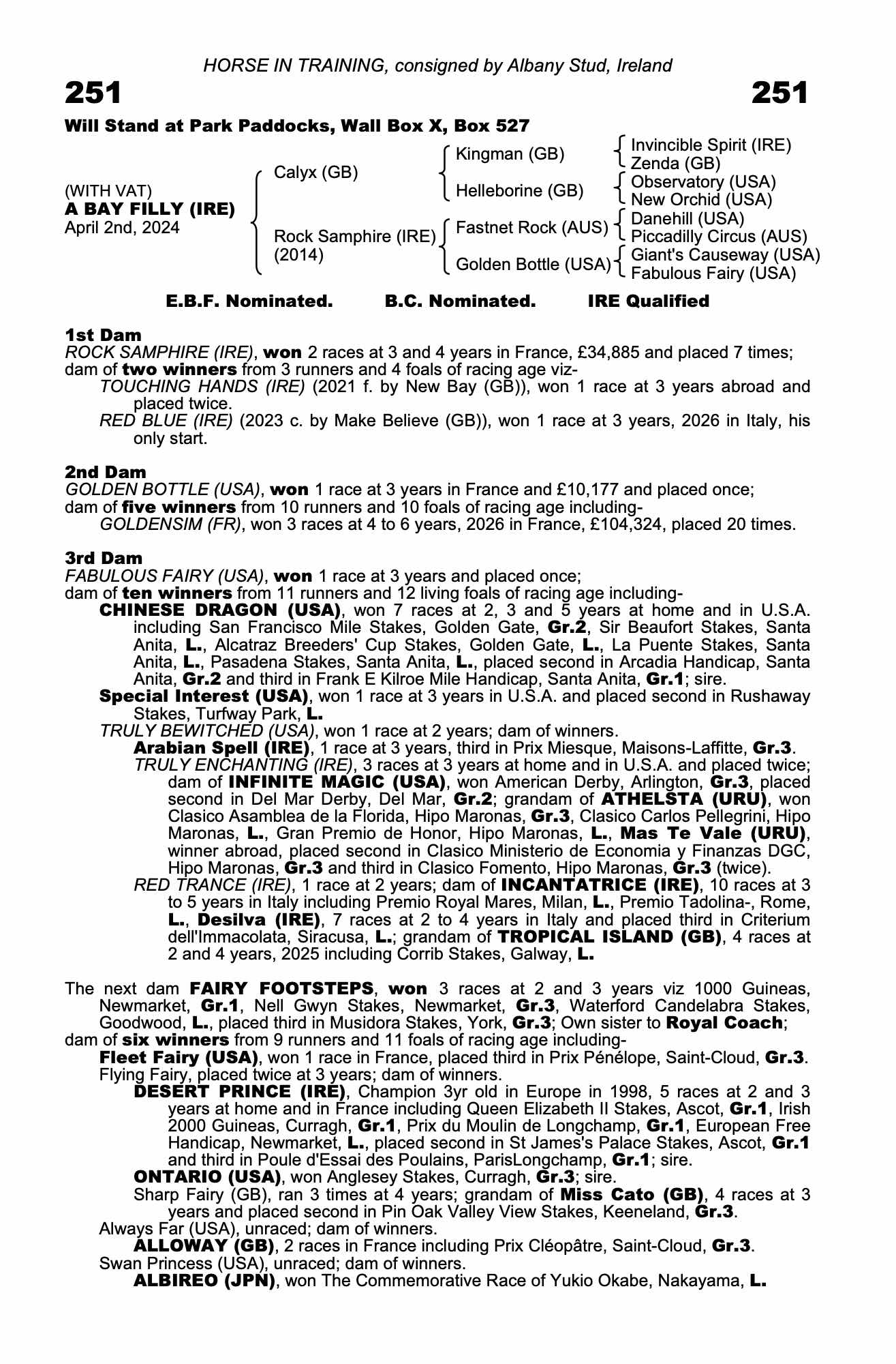 Consignor: Albany Stud, Ireland