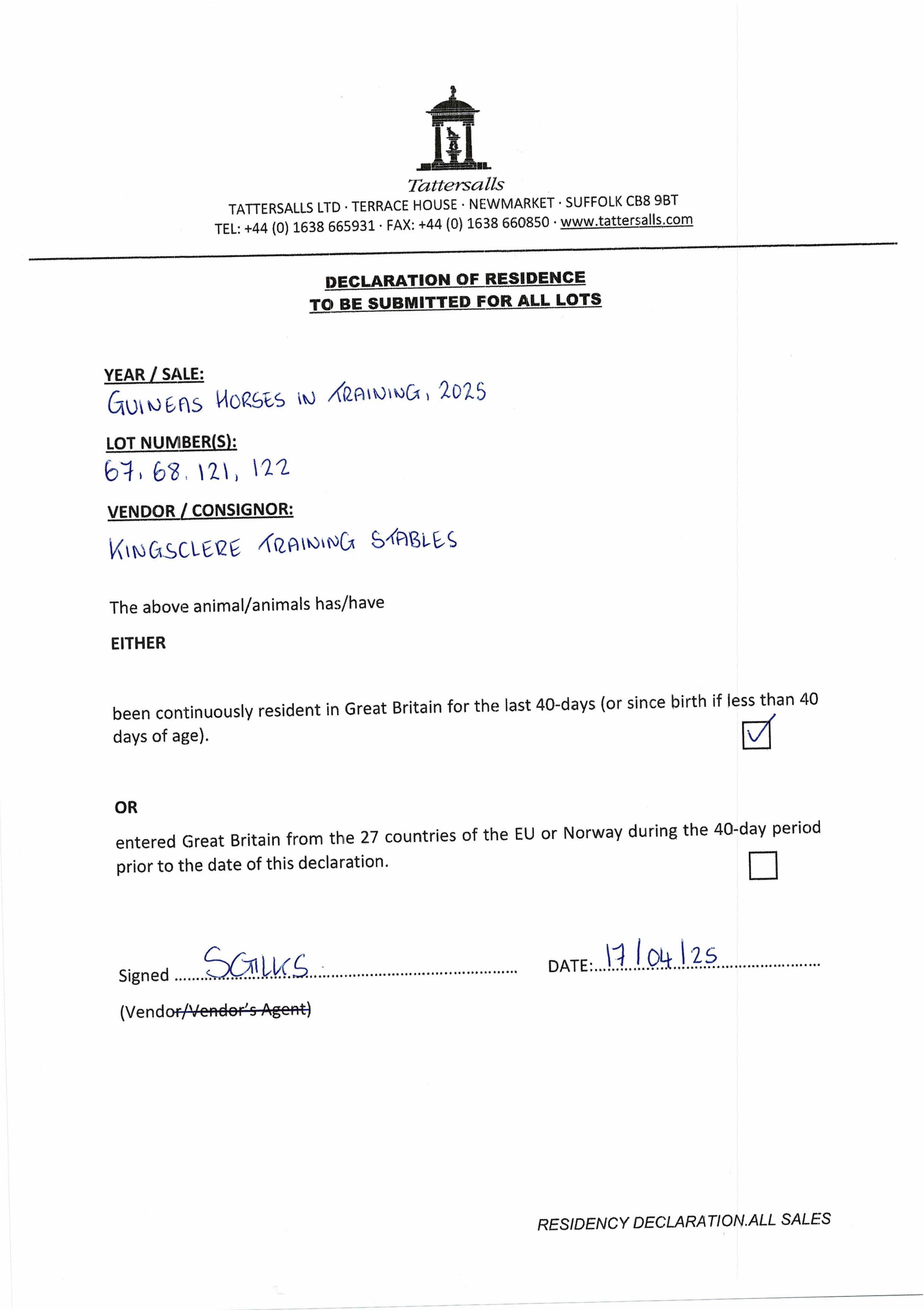 Consignor: Kingsclere Training Stables (A. Balding)