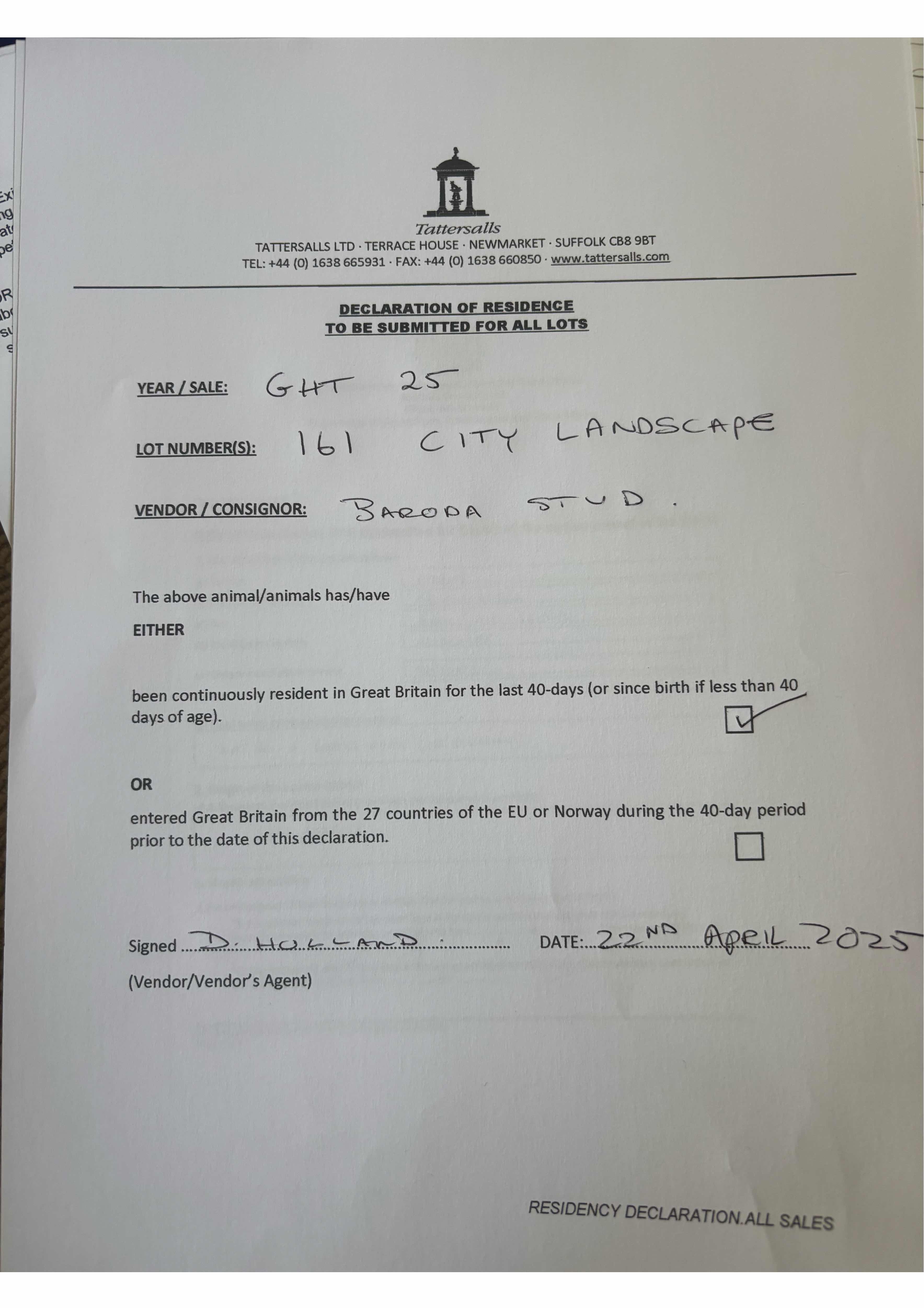 Consignor: Baroda Stud, Ireland