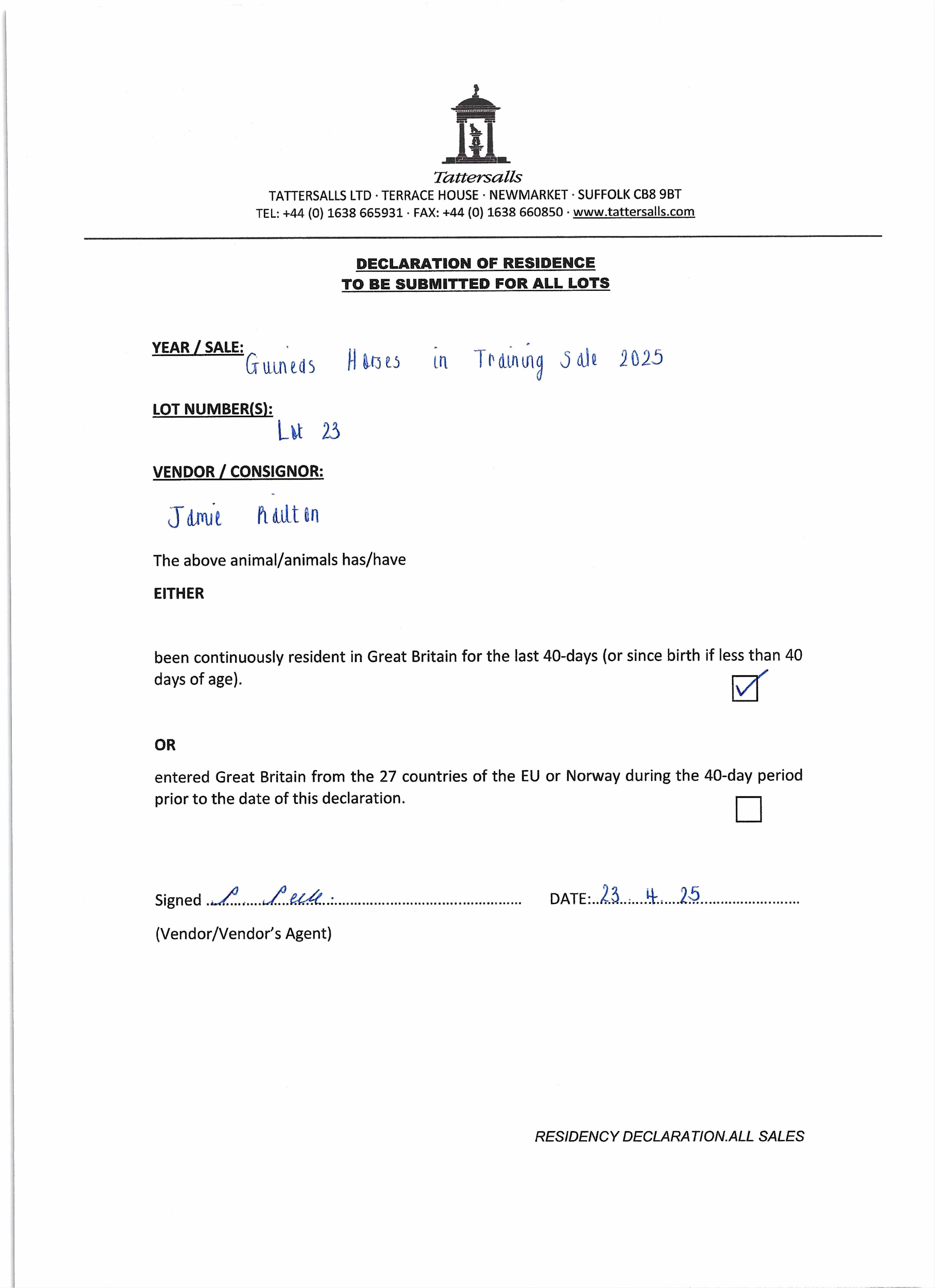 Consignor: Jamie Railton (Agent)