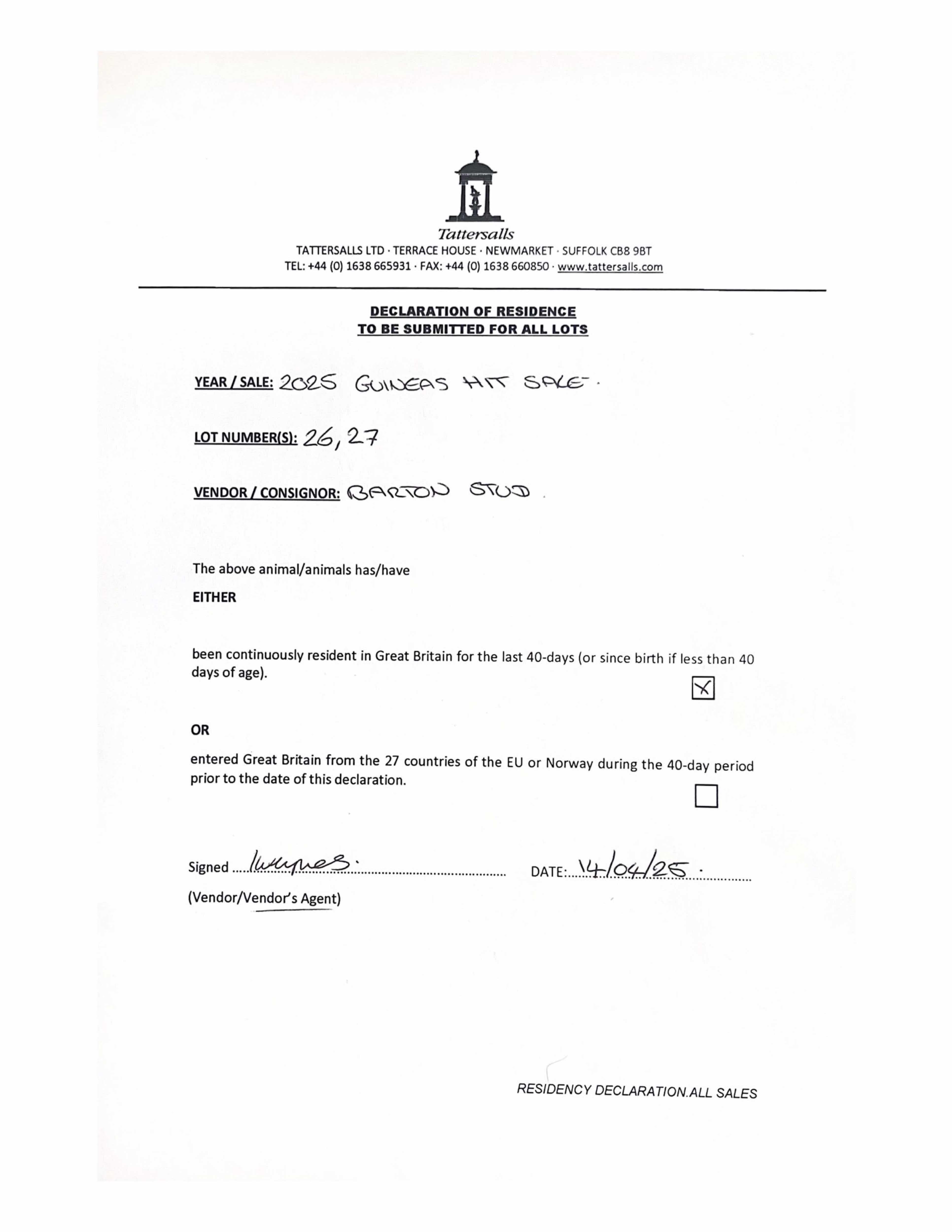 October Yearling Sale, Book 1 2025 lot 239 C. by Baaeed (GB) 2024, Barton Stud=>Blake James, BSW / Crow, Agent 300,000 gns