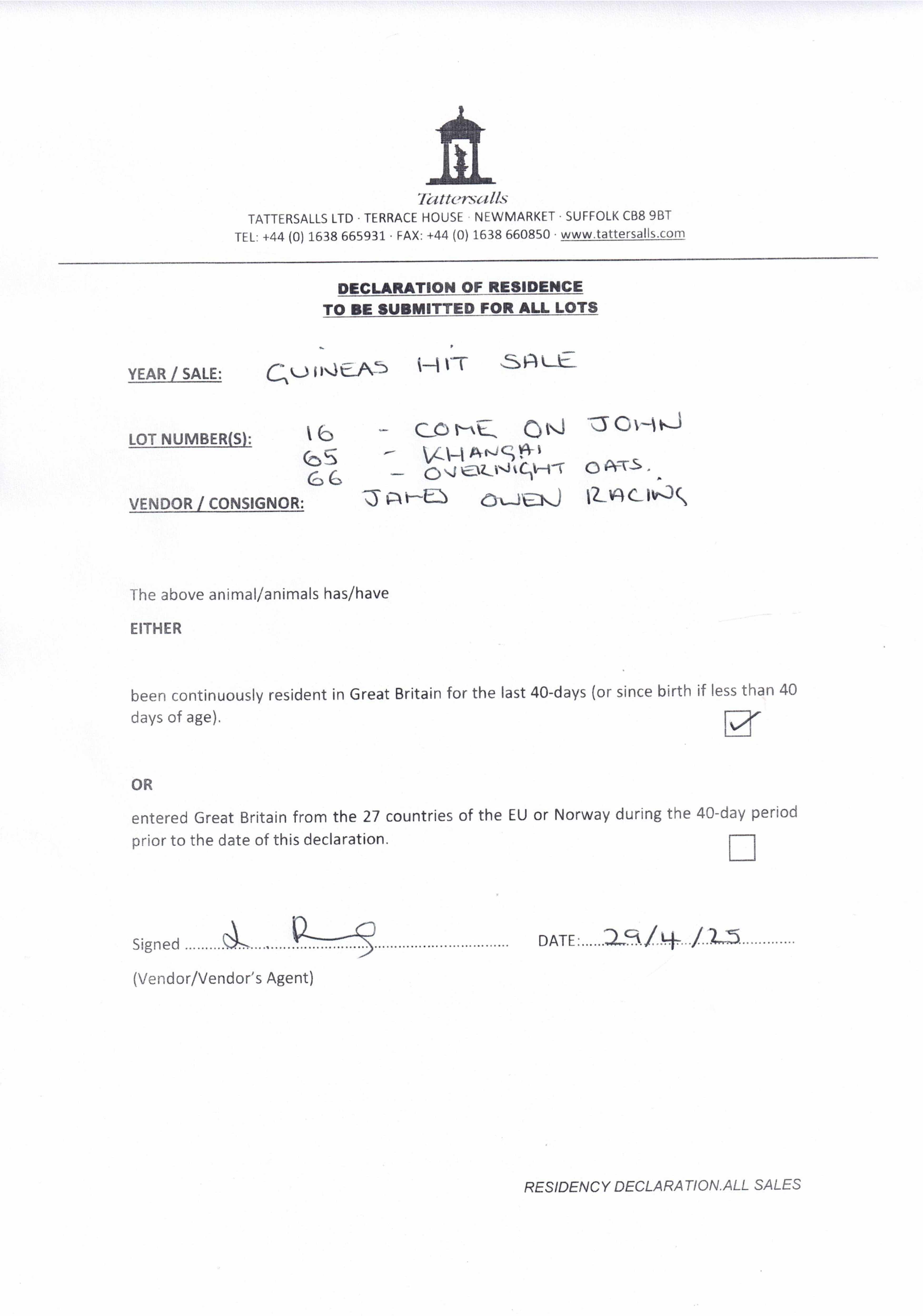 Consignor: James Owen Racing