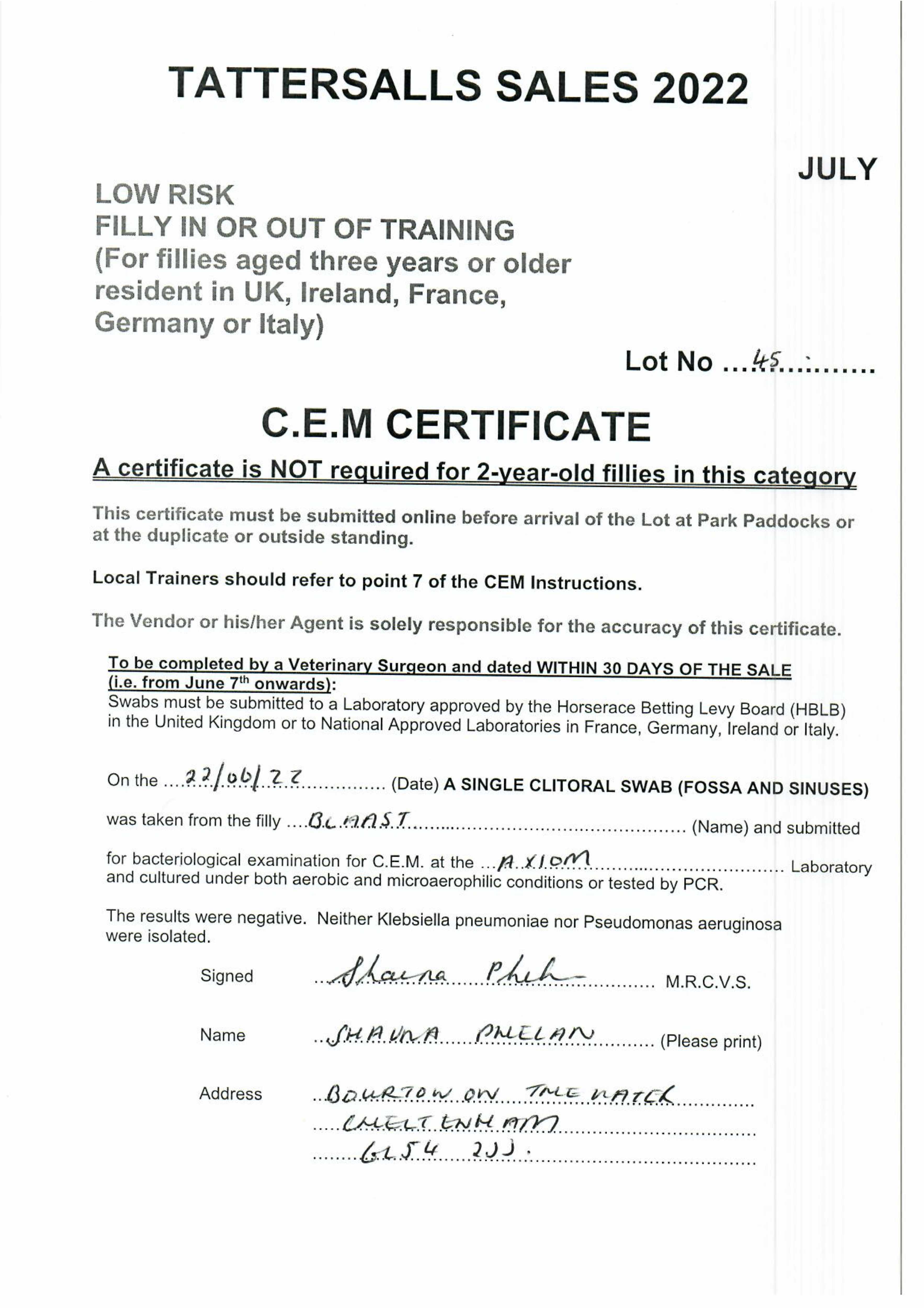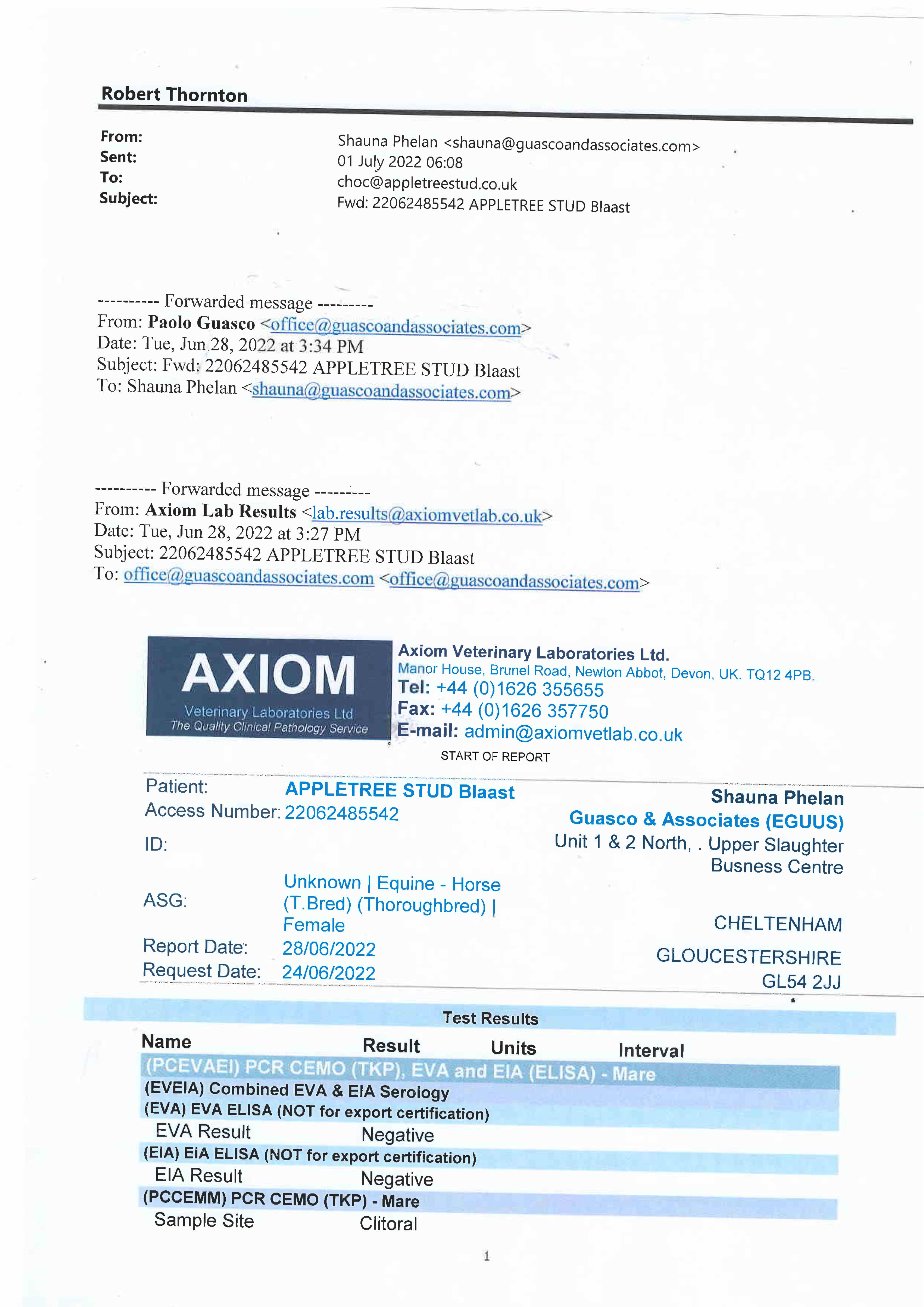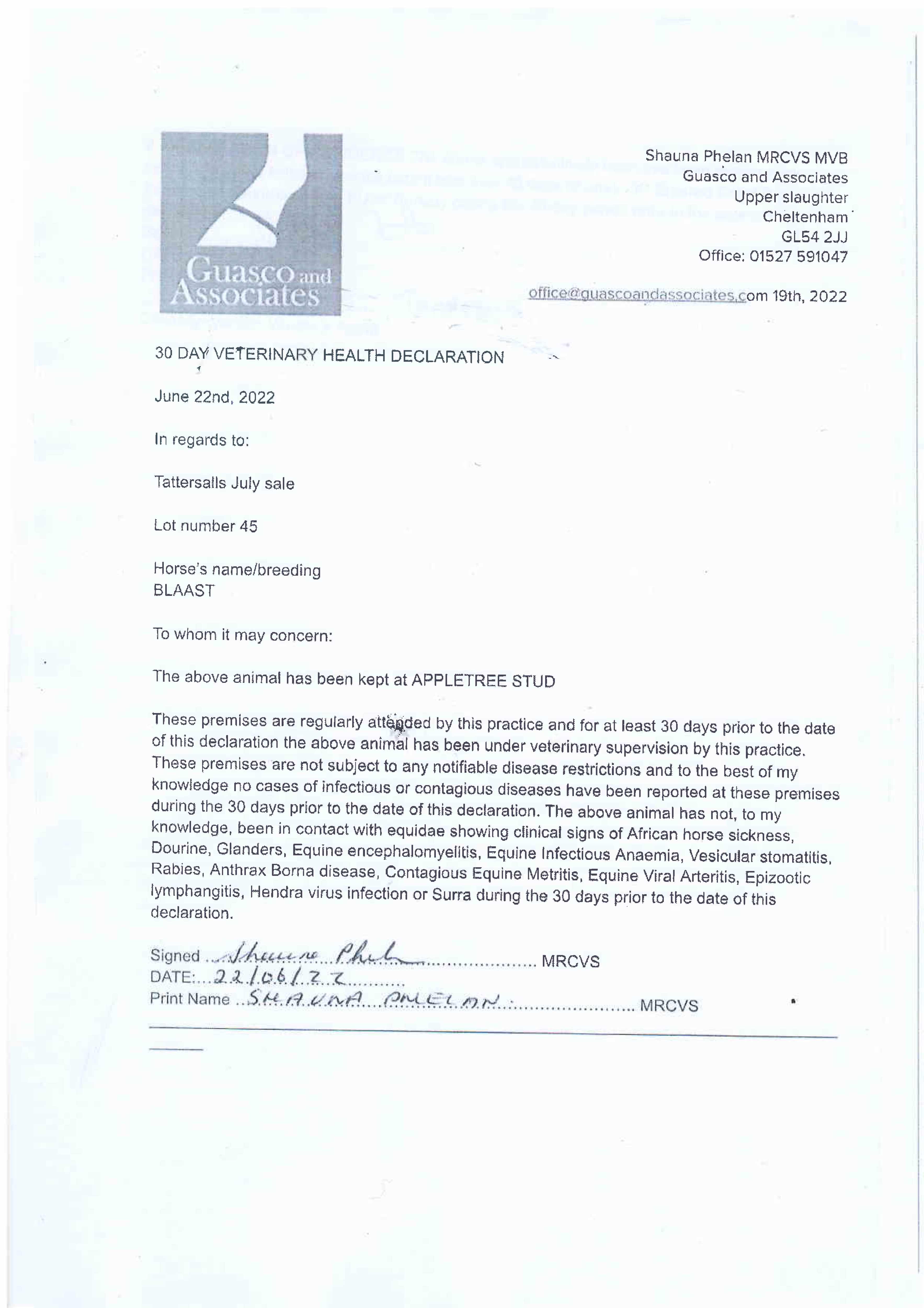 Contact: Robert Thornton ✆ 07825235822 ✉ choc@appletreestud.co.uk