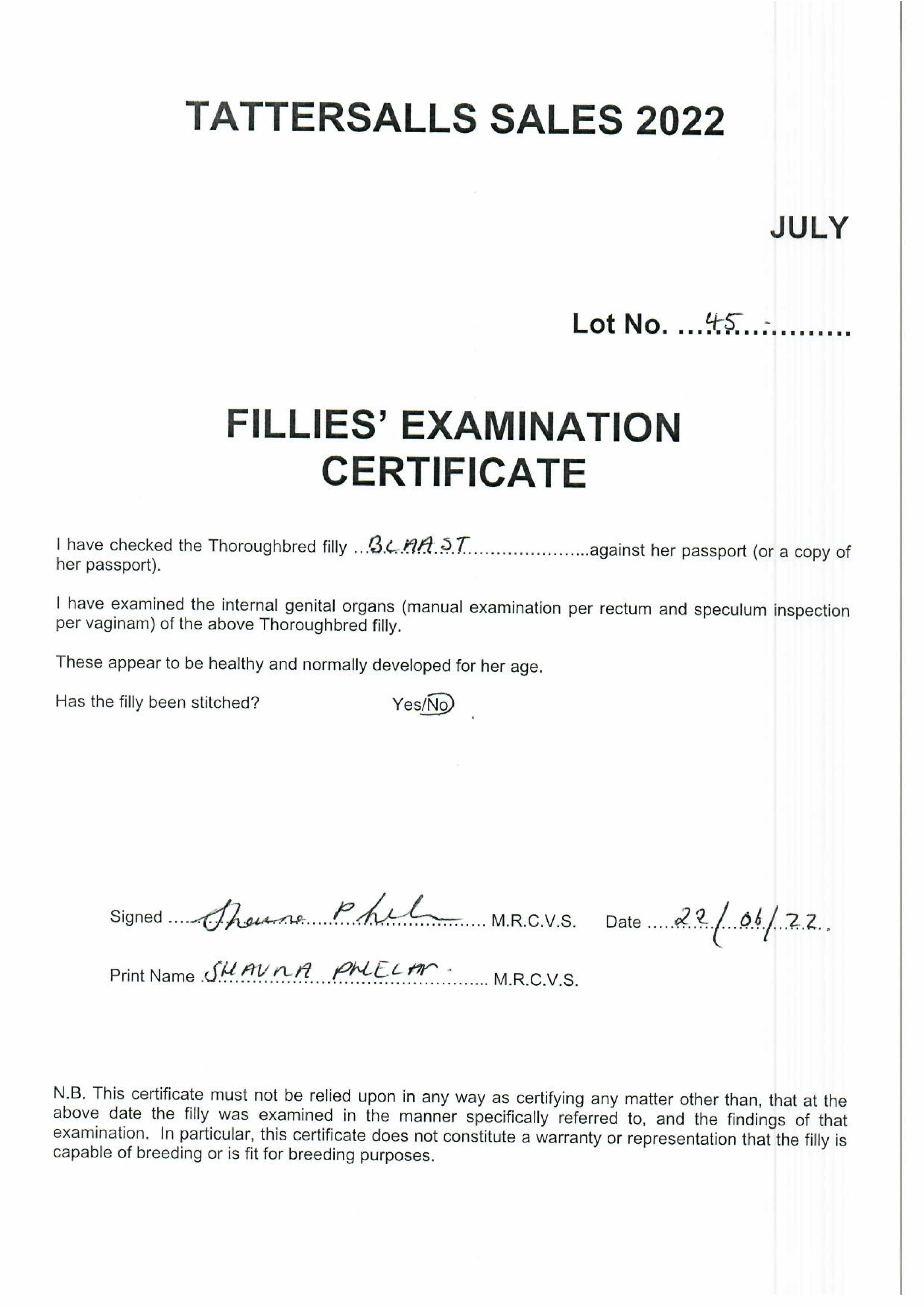 December Mare Sale 2025 lot 1490 Absolute Star (GB) (F. by Dark Angel (IRE)), Appletree Stud=>Meadowlands Stud (Co Down) 18,000 gns