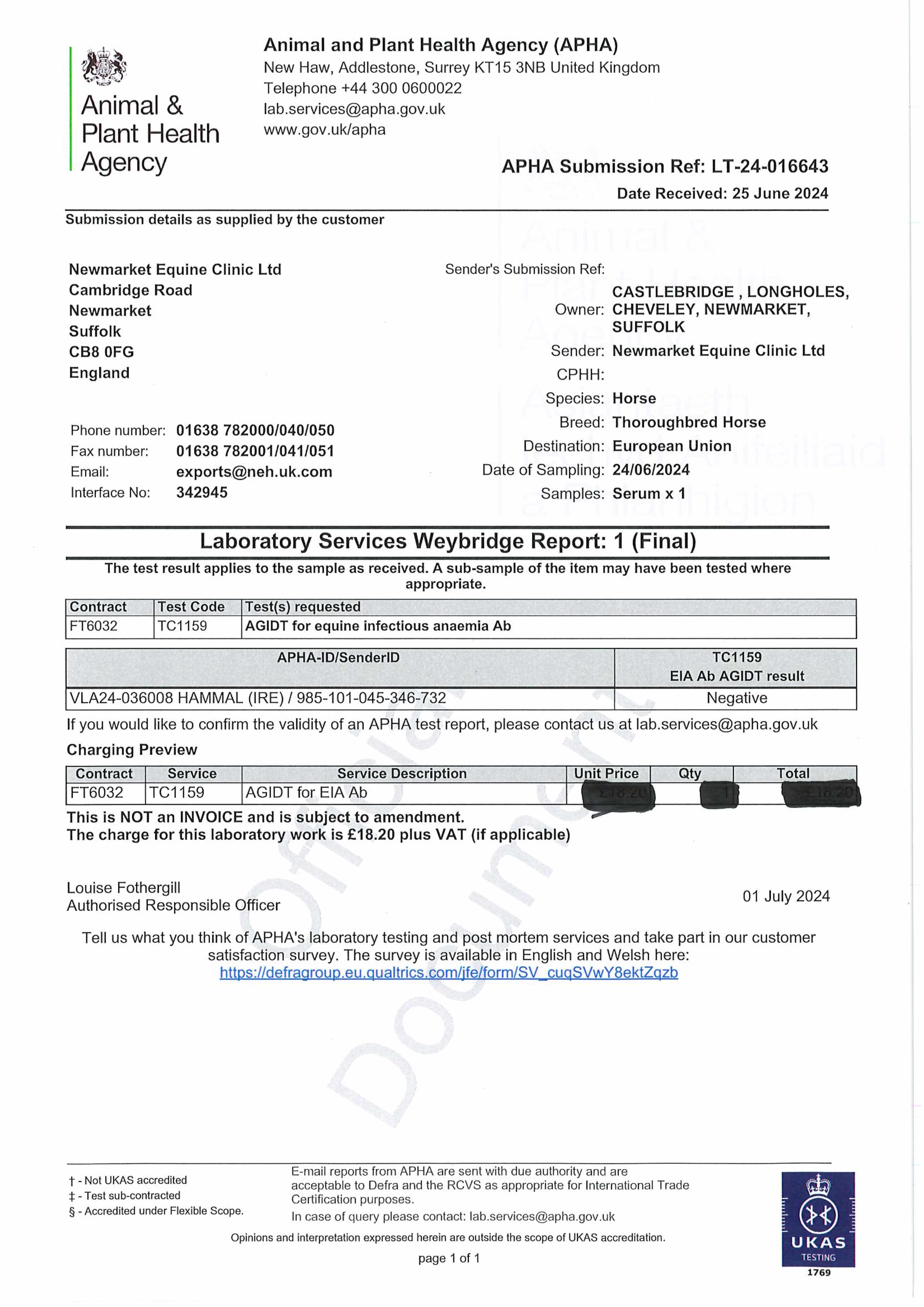 Online Sale - 25th October 2024 lot 93 Farnaleen (IRE) (F.), Cedar Lodge Stables (S. Kirk)=>Lot Not Sold 900 gns