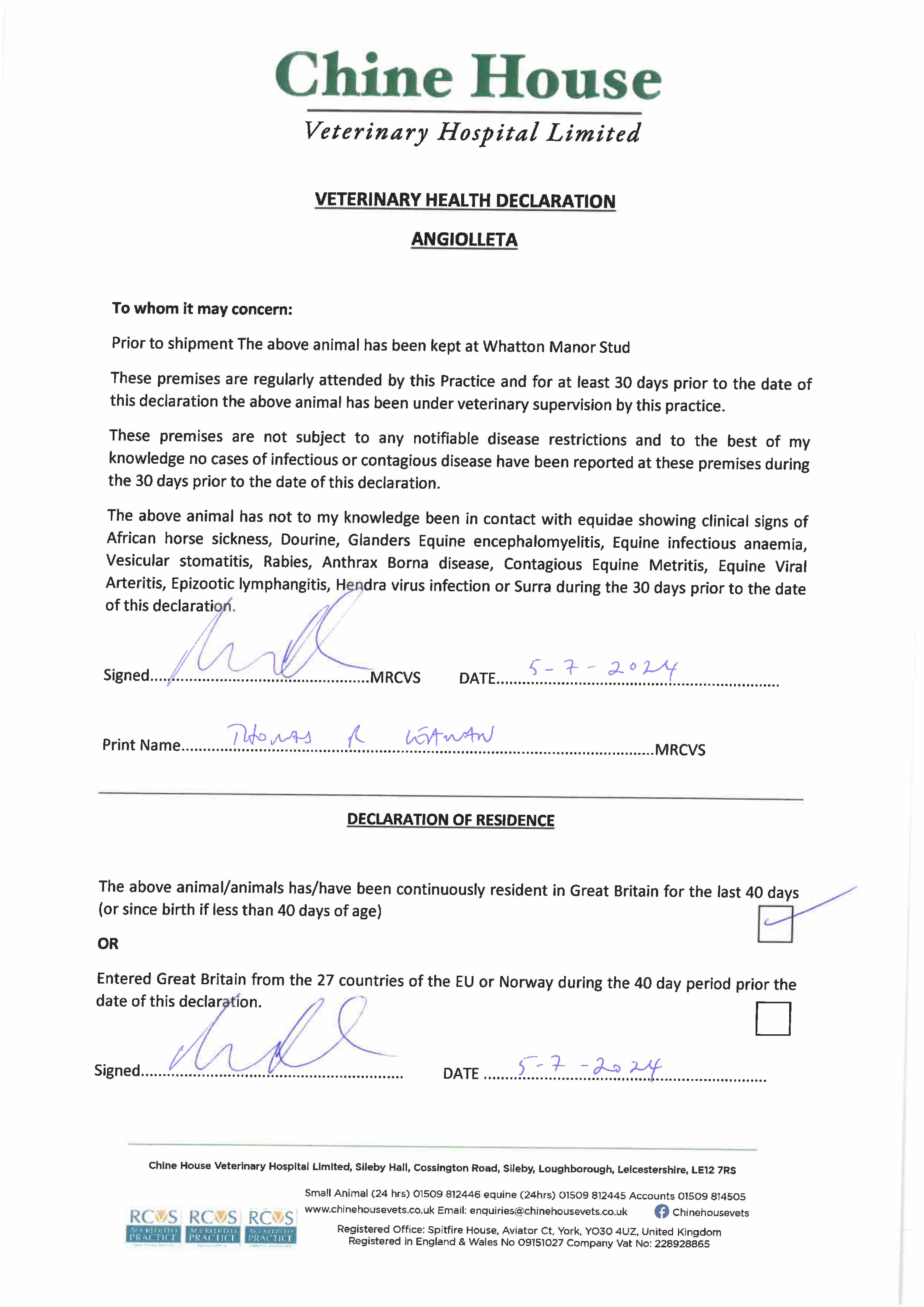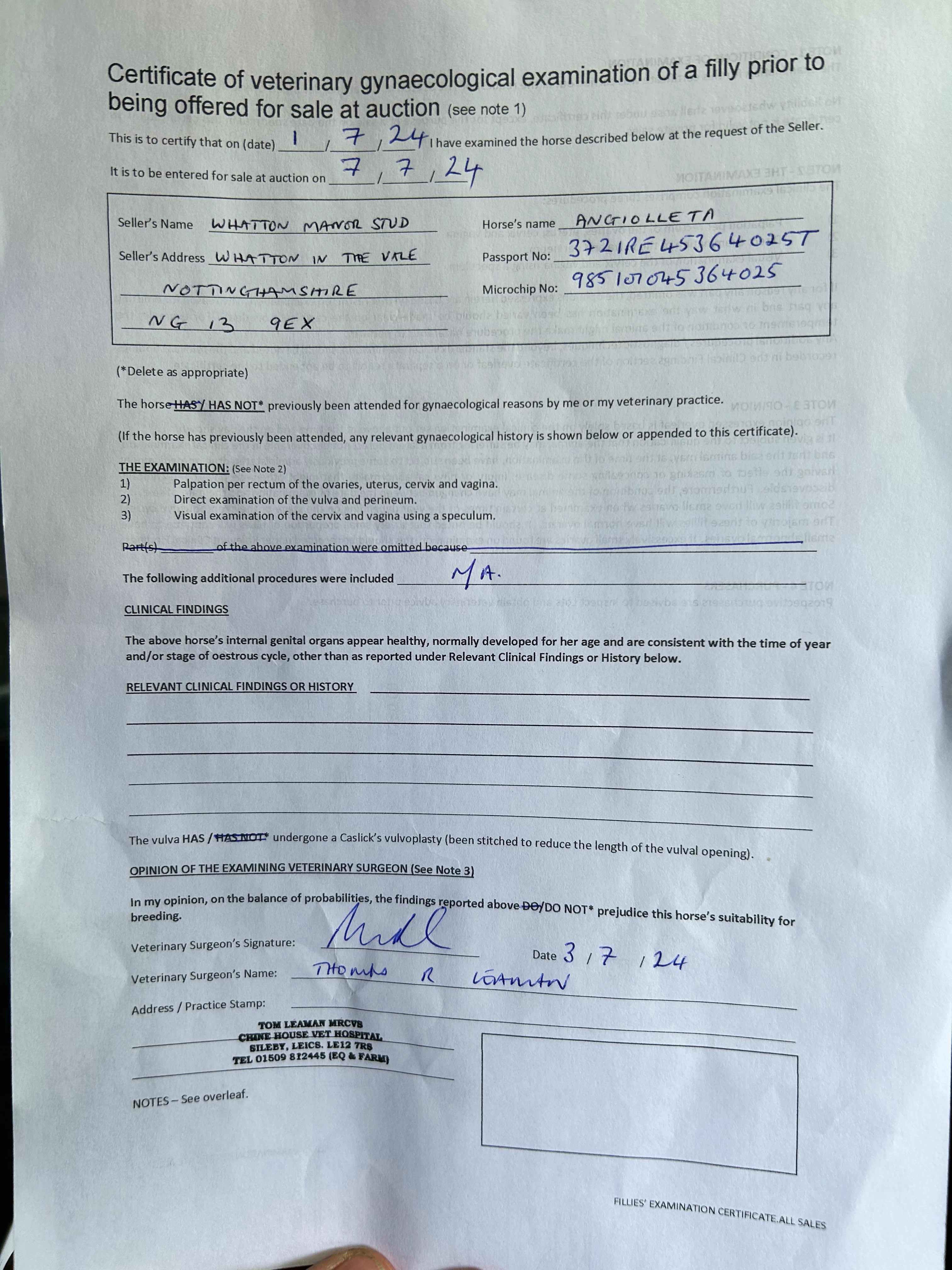 Consignor: Whatton Manor Stud