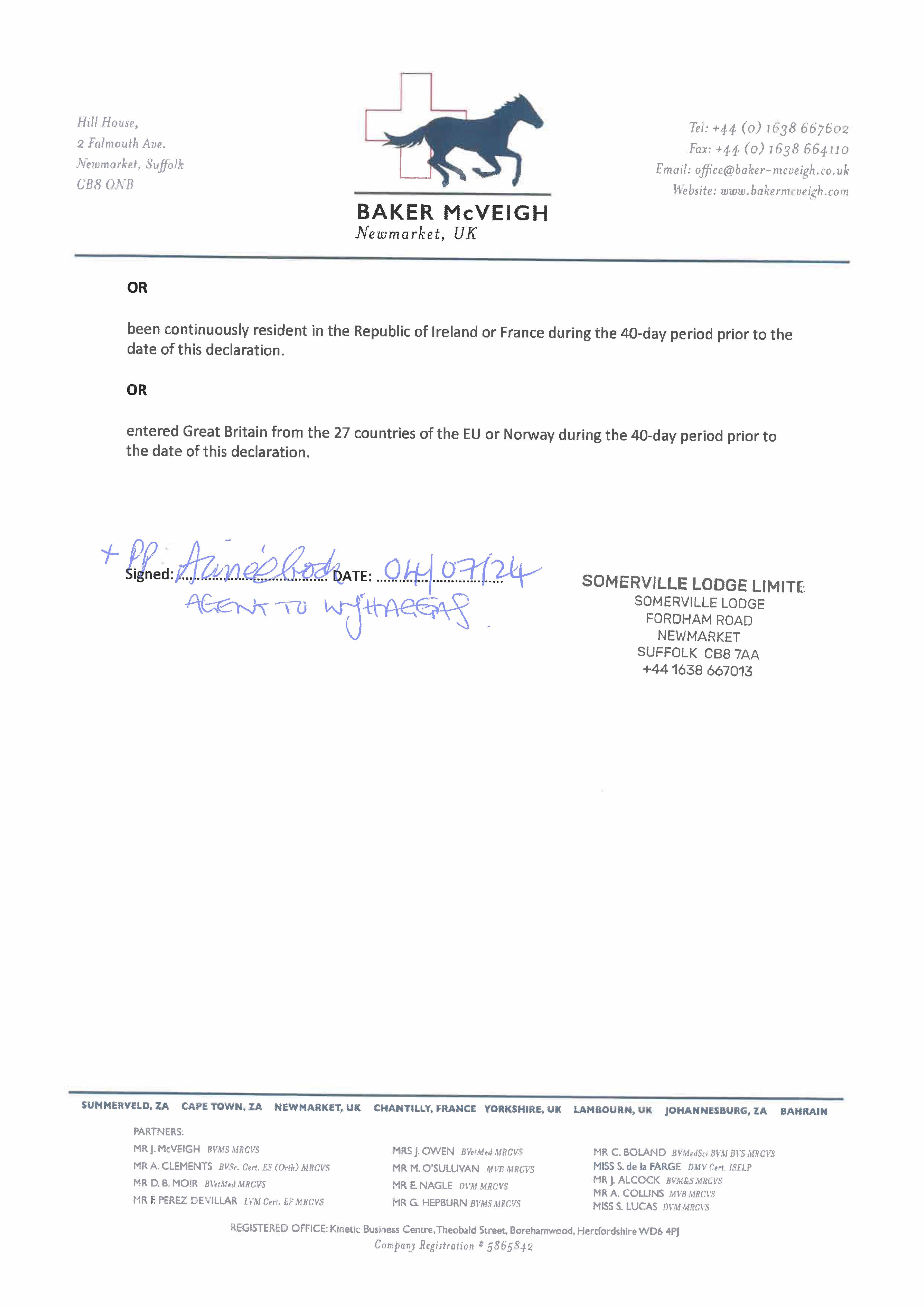 Consignor: Somerville Lodge Ltd. (W. Haggas), Agent