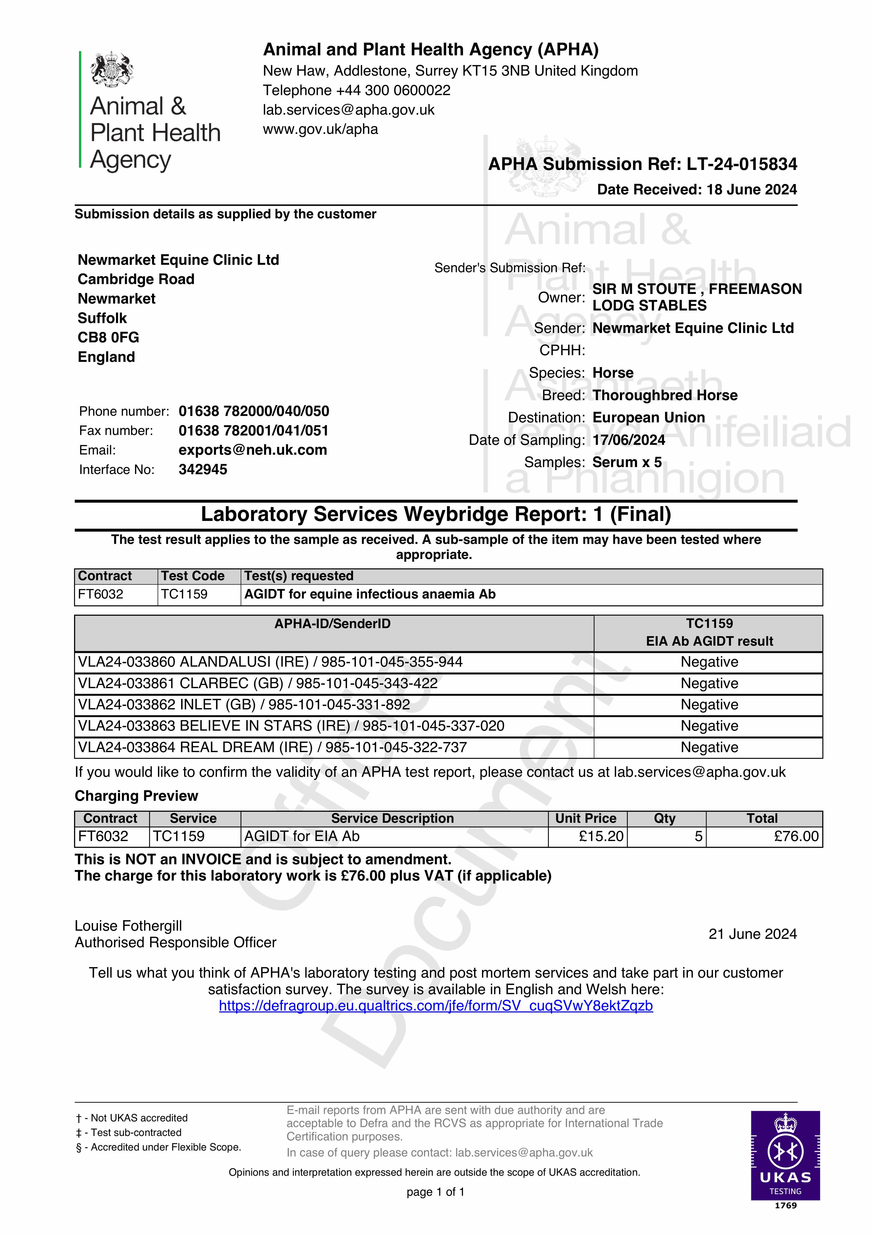 Consignor: Freemason Lodge Stables (Sir M. Stoute)
