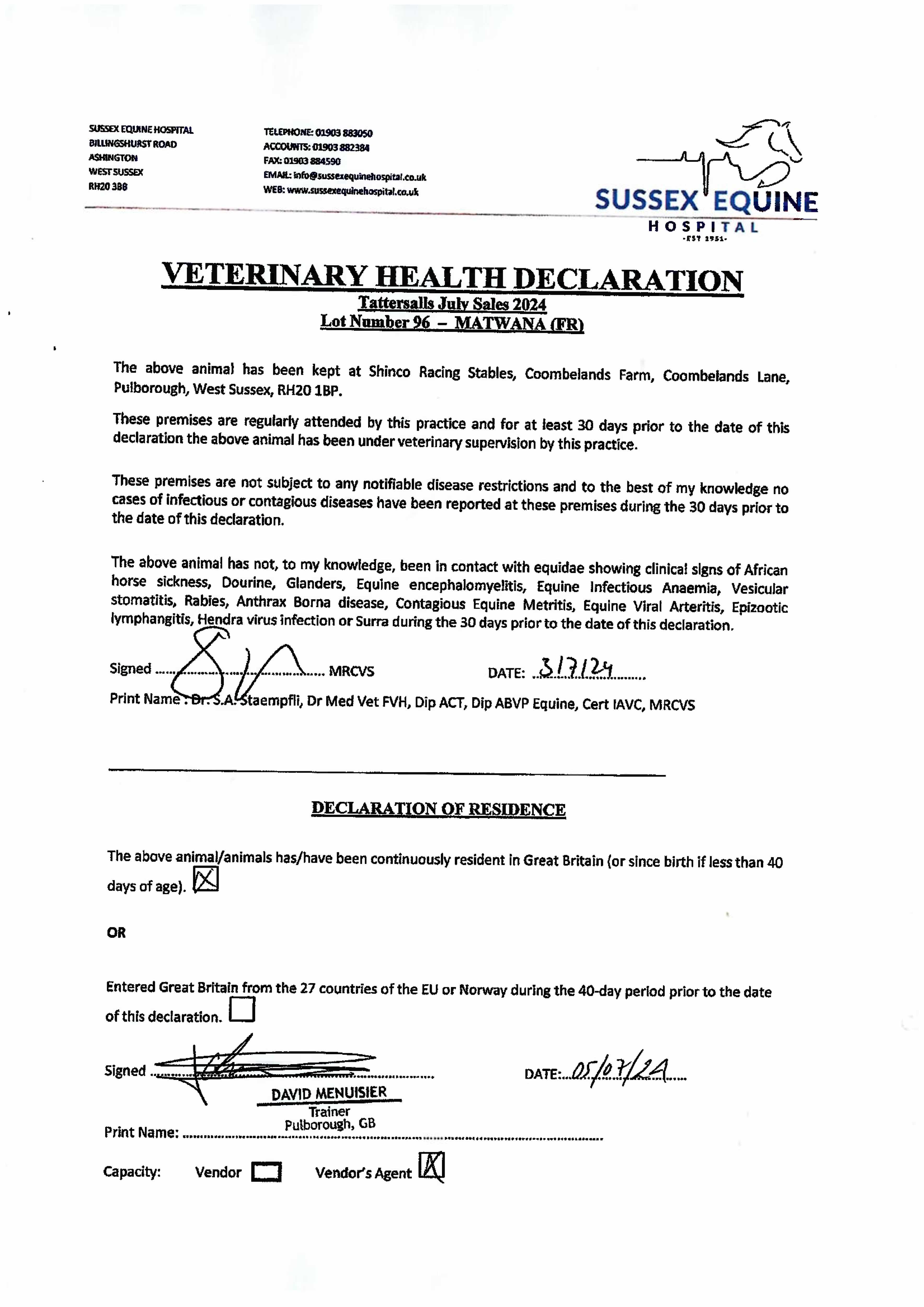 Consignor: Jamie Railton (Agent)