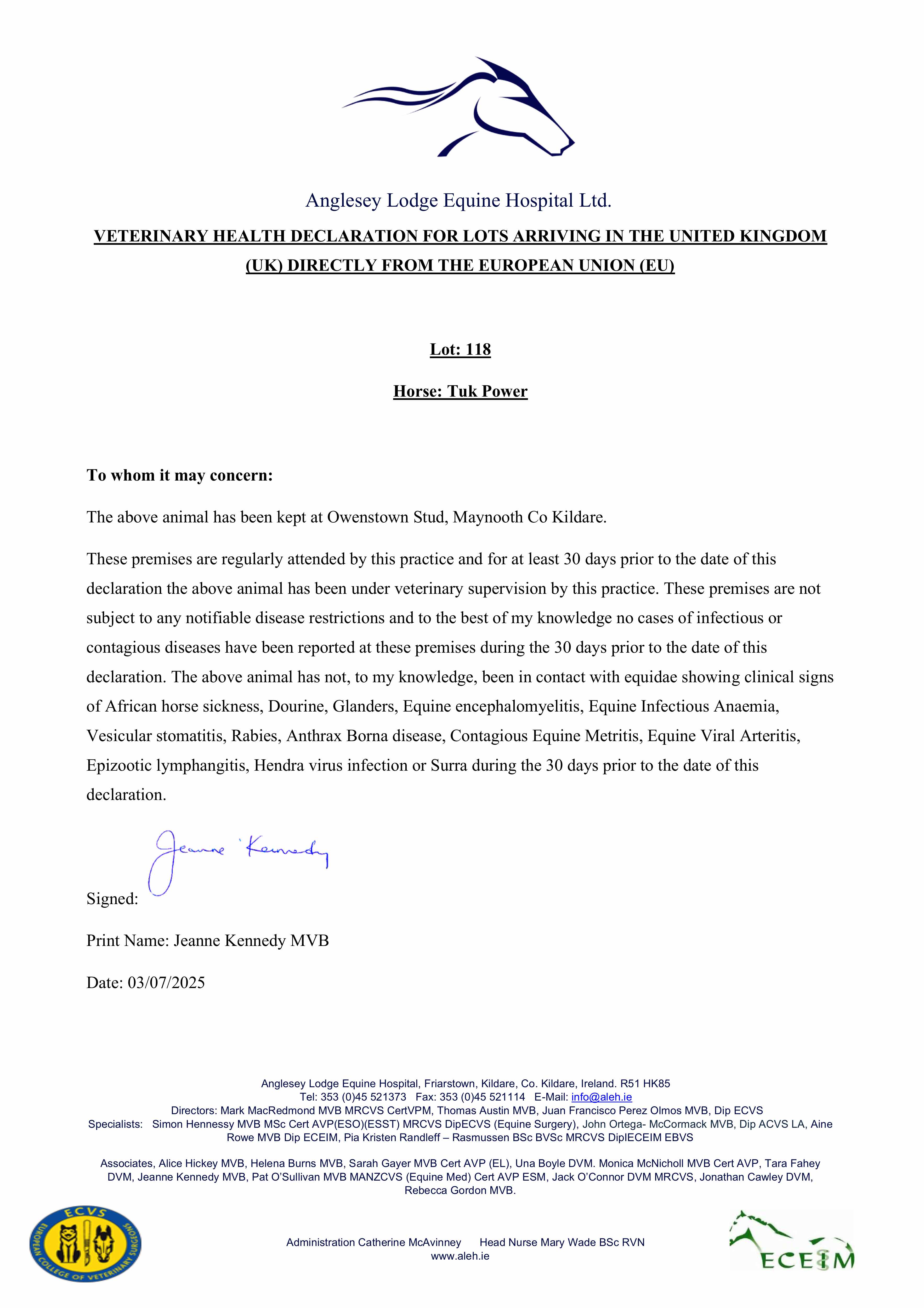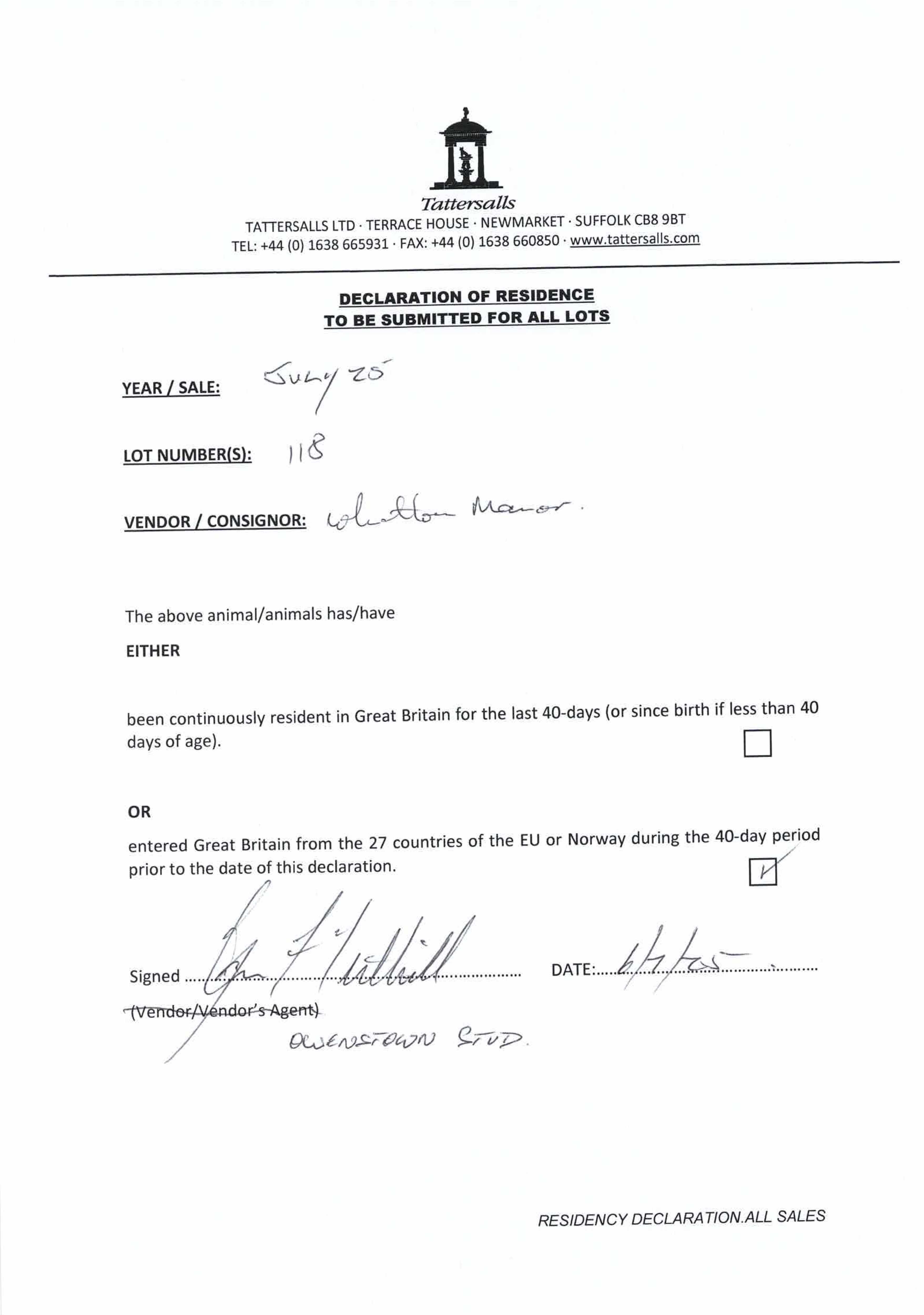 Consignor: Whatton Manor Stud