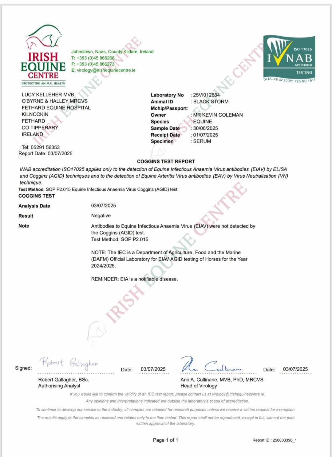 Monday 23 June: BLACK STORM (IRE), placed twice. 20/06/25 – 3rd of 14 in 7f (Hcp), Down Royal (G)