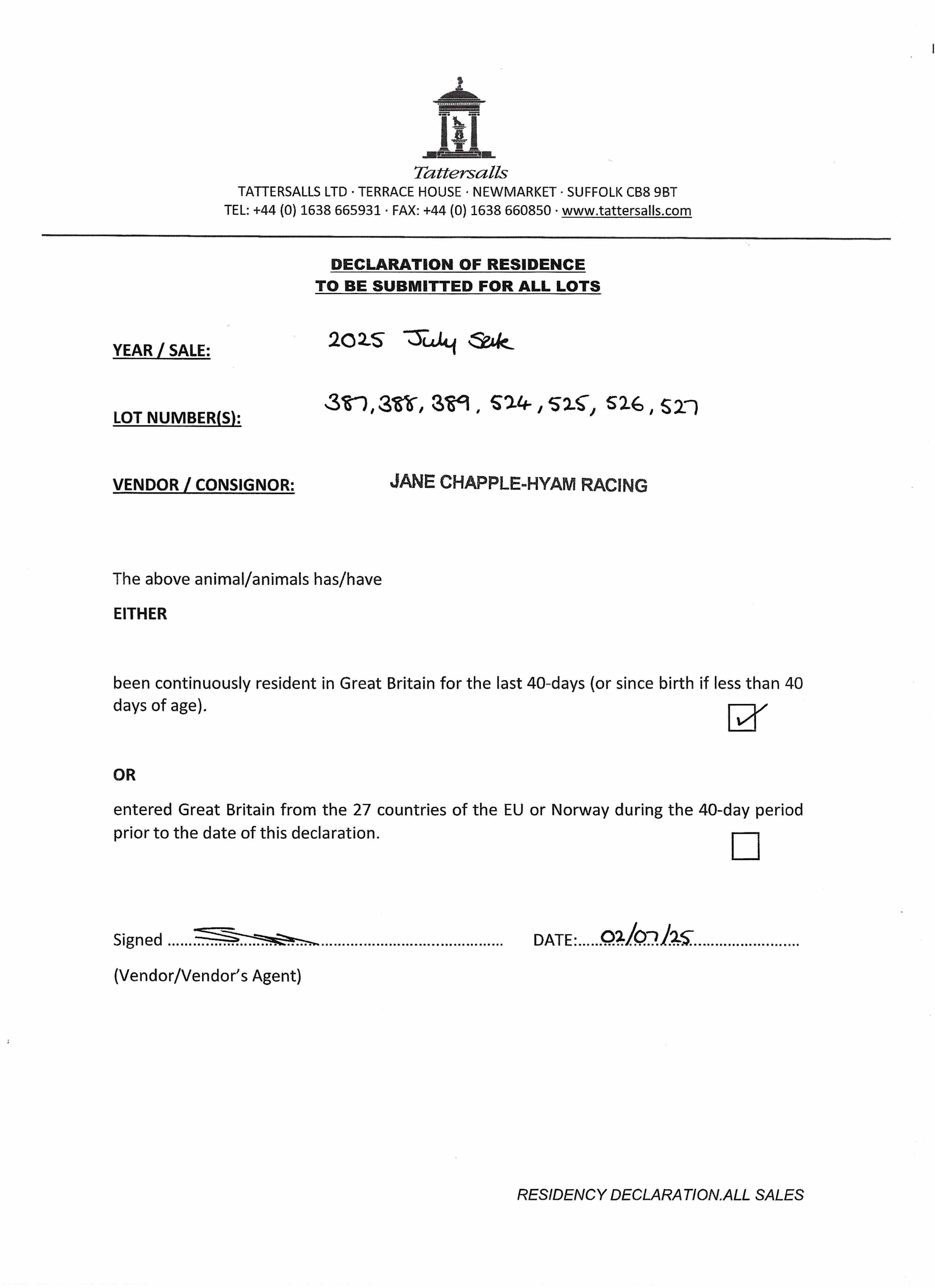 Consignor: Jane Chapple-Hyam Racing