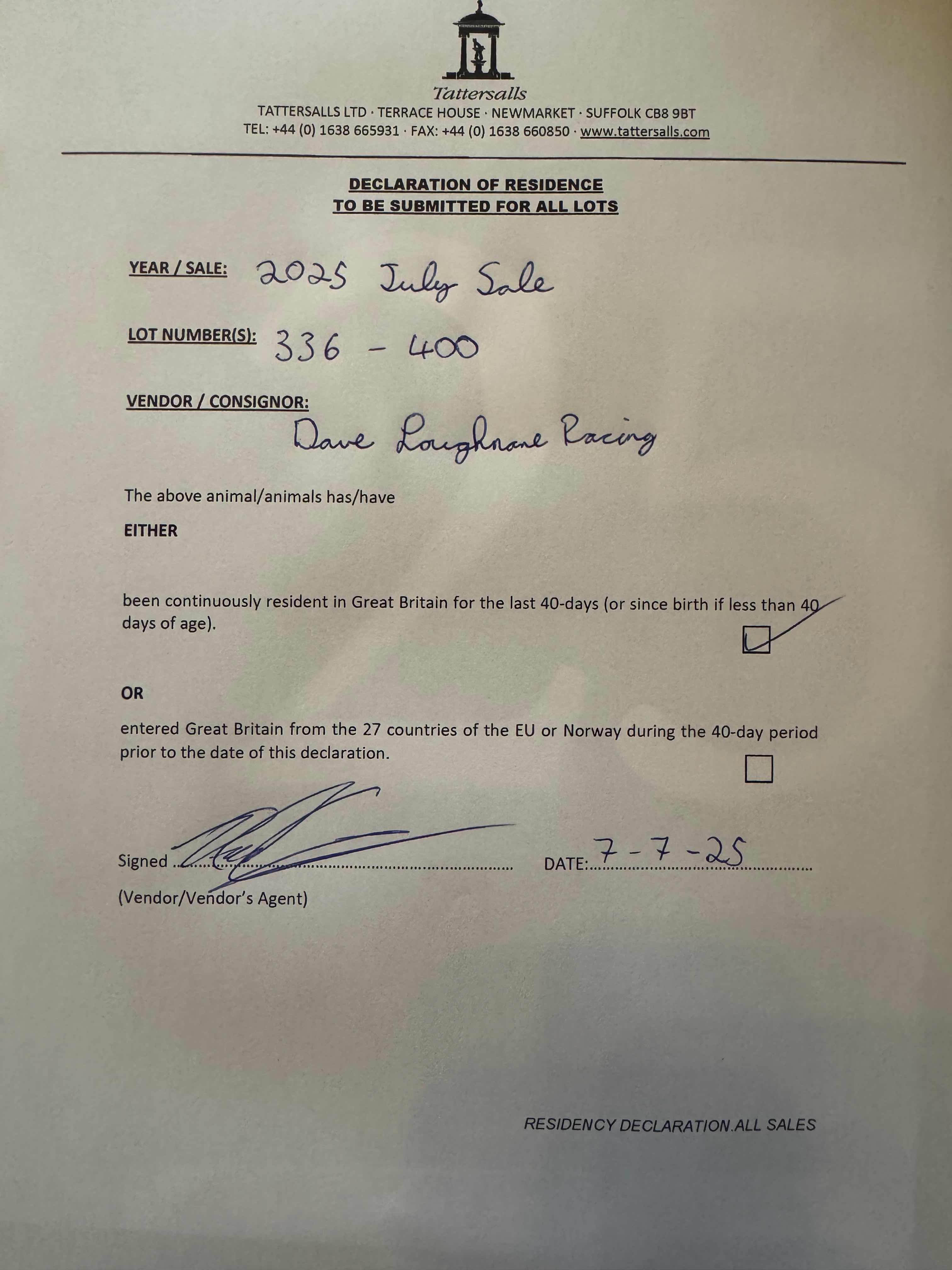 Consignor: David Loughnane Racing