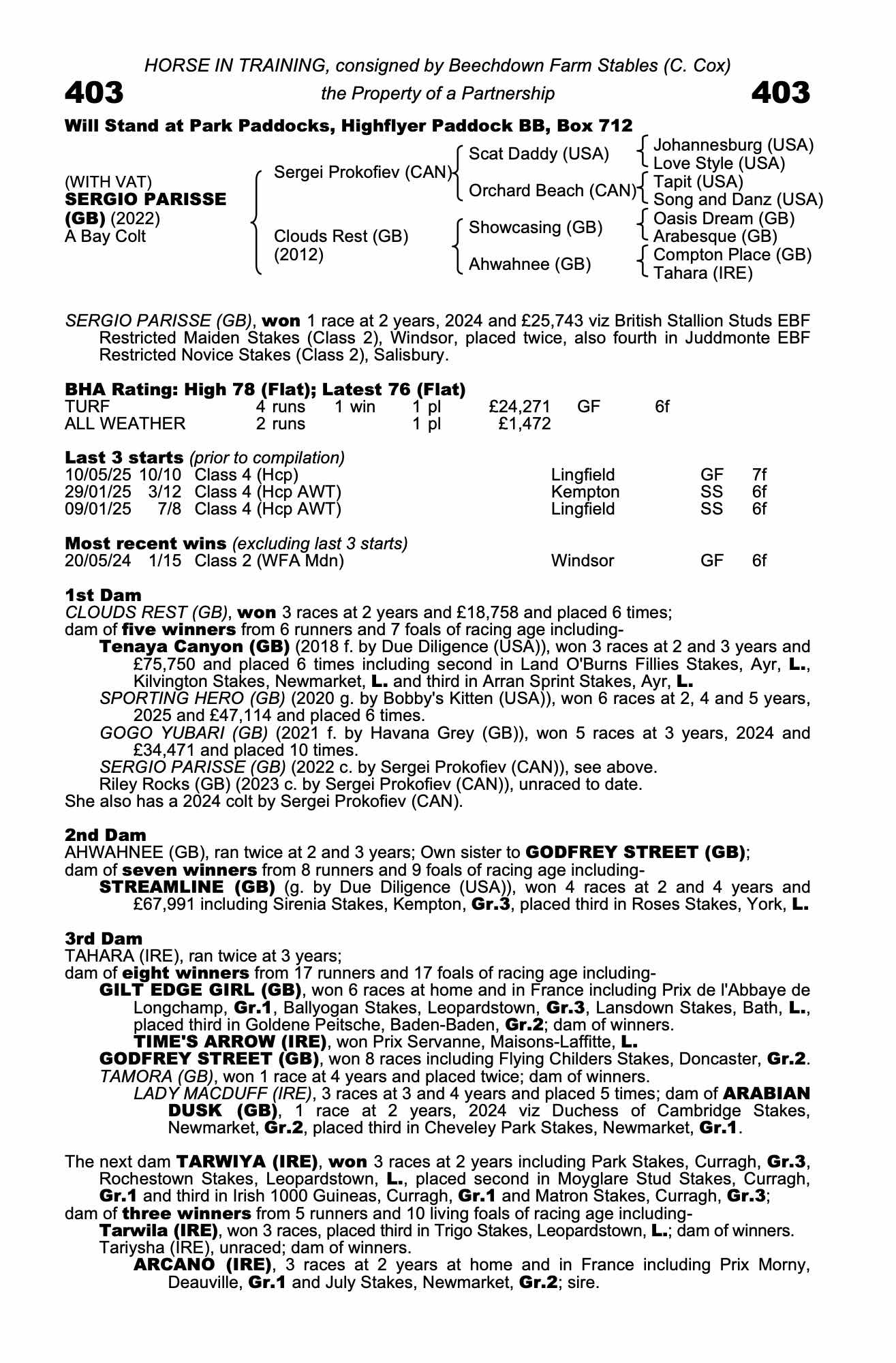 Online Sale - 12th February 2025 lot 16 Gogo Yubari (GB) (F. by Havana Grey (GB)), Dylan Cunha Racing Ltd=>Lot Not Sold 21,000 gns