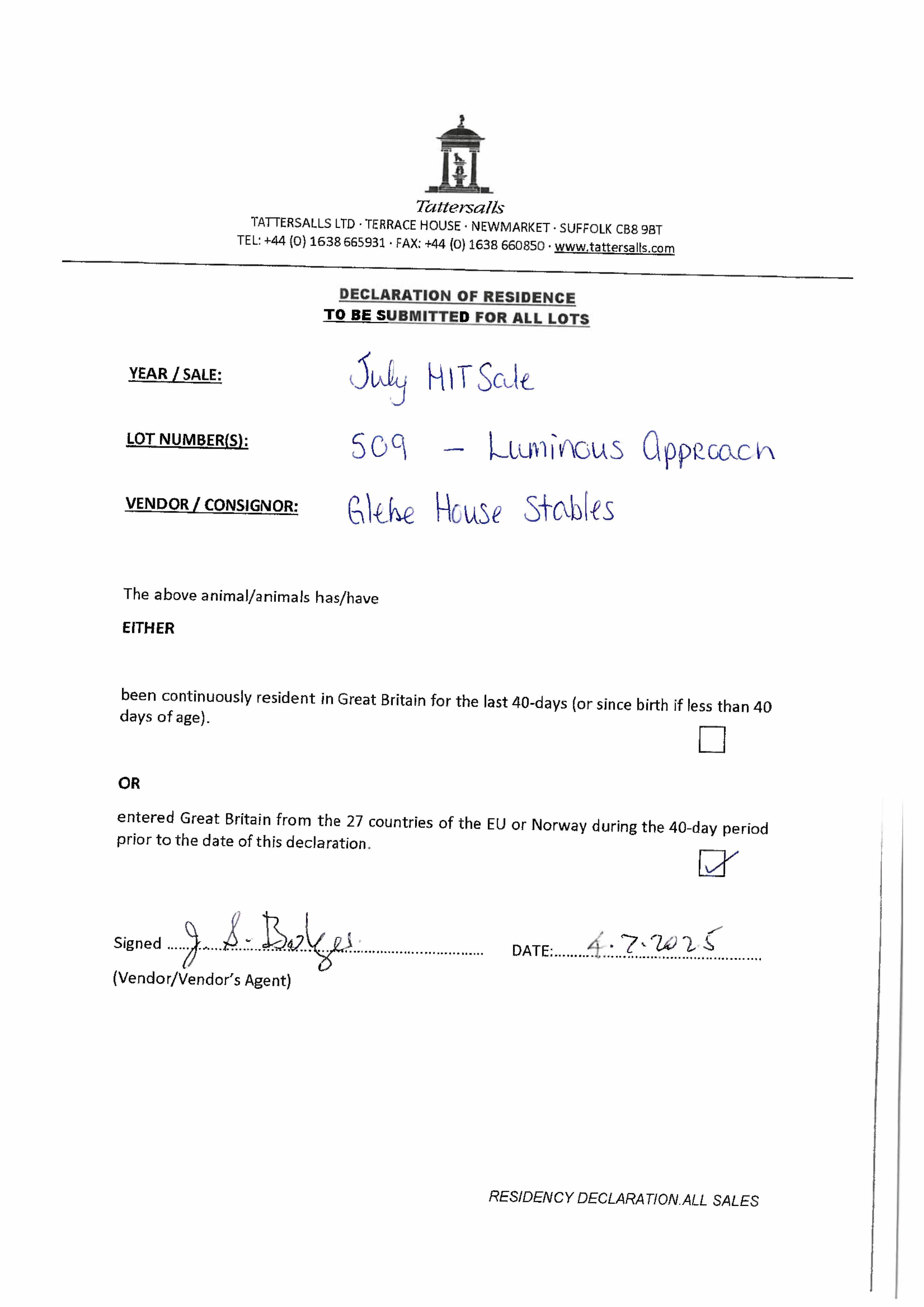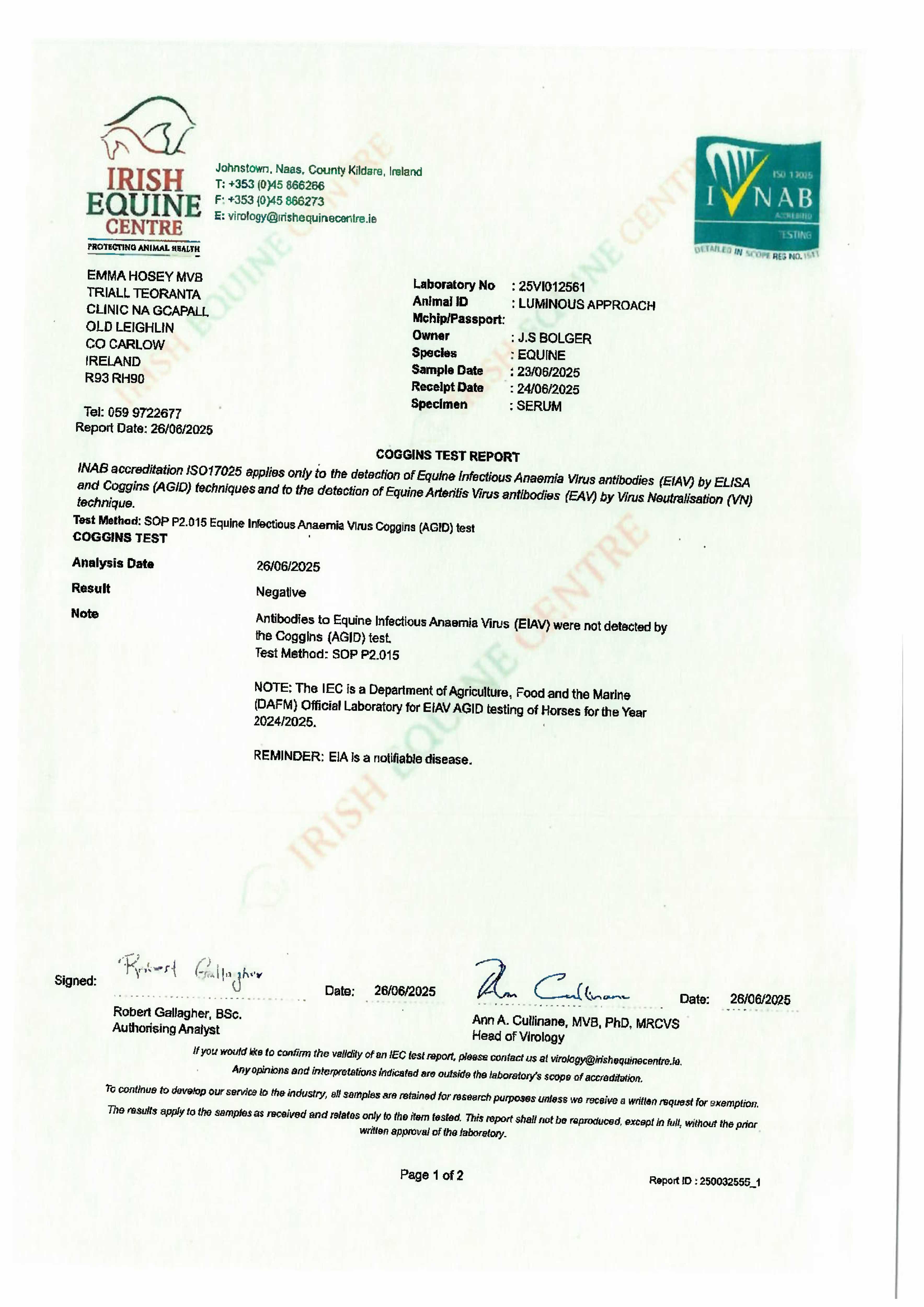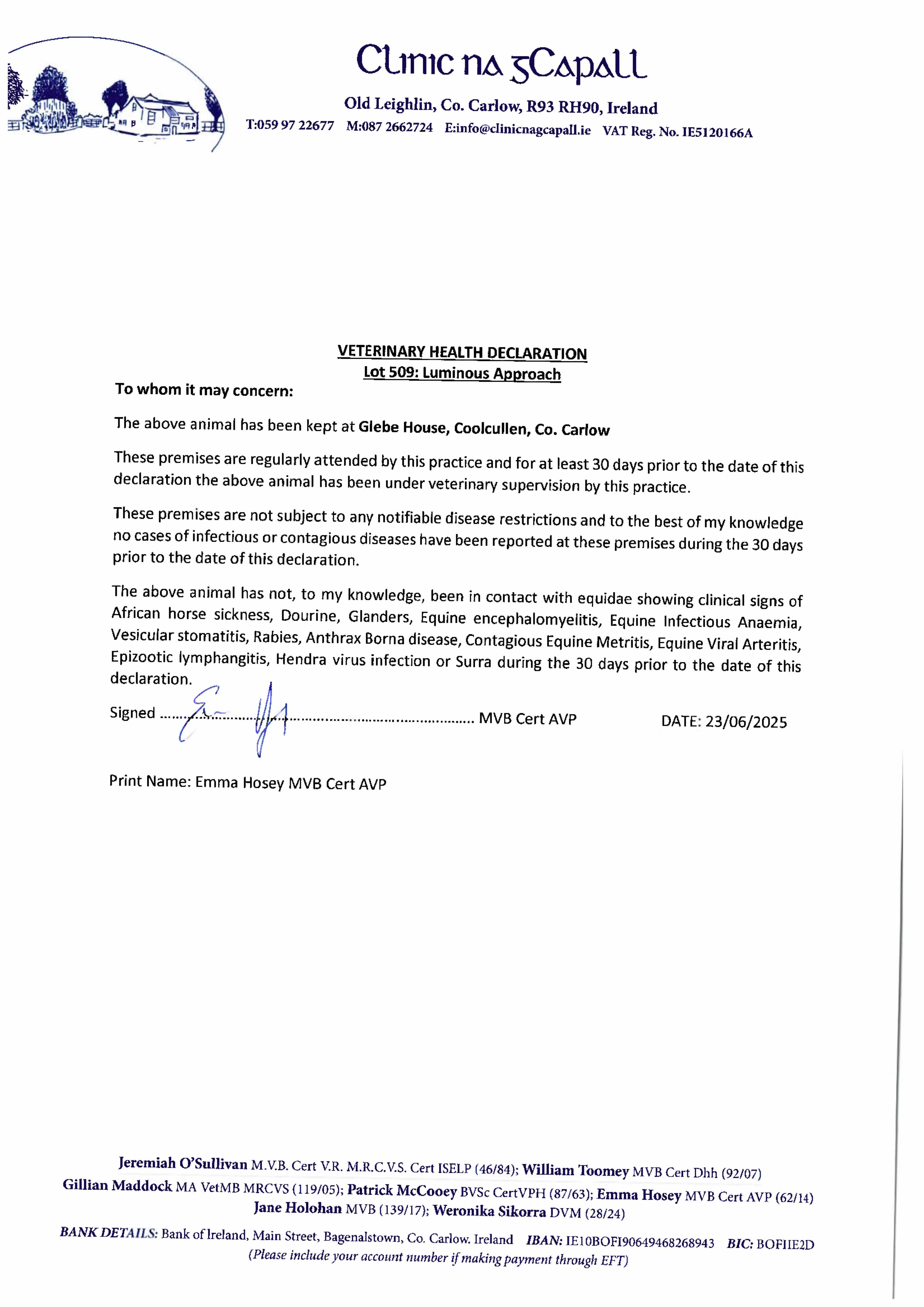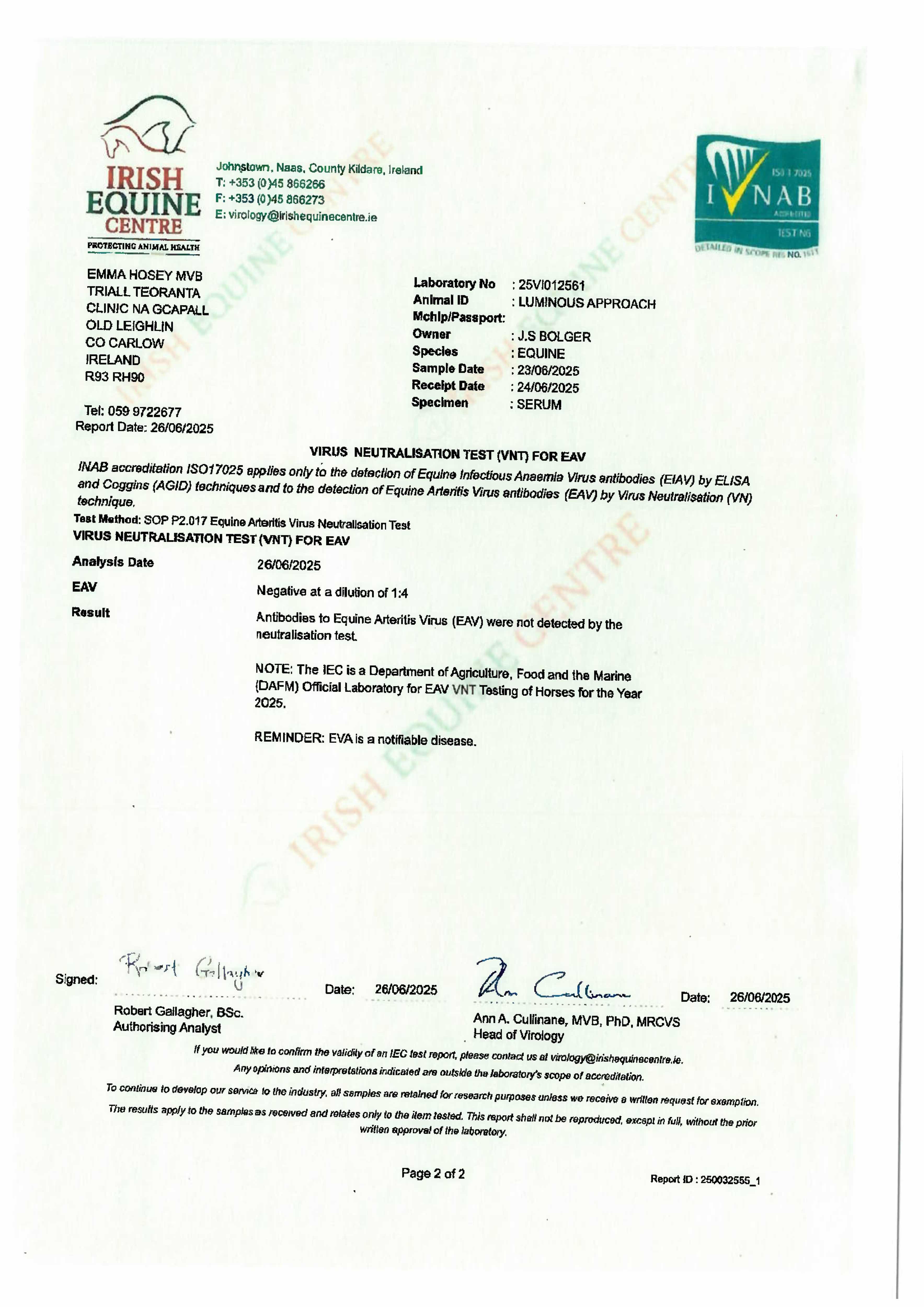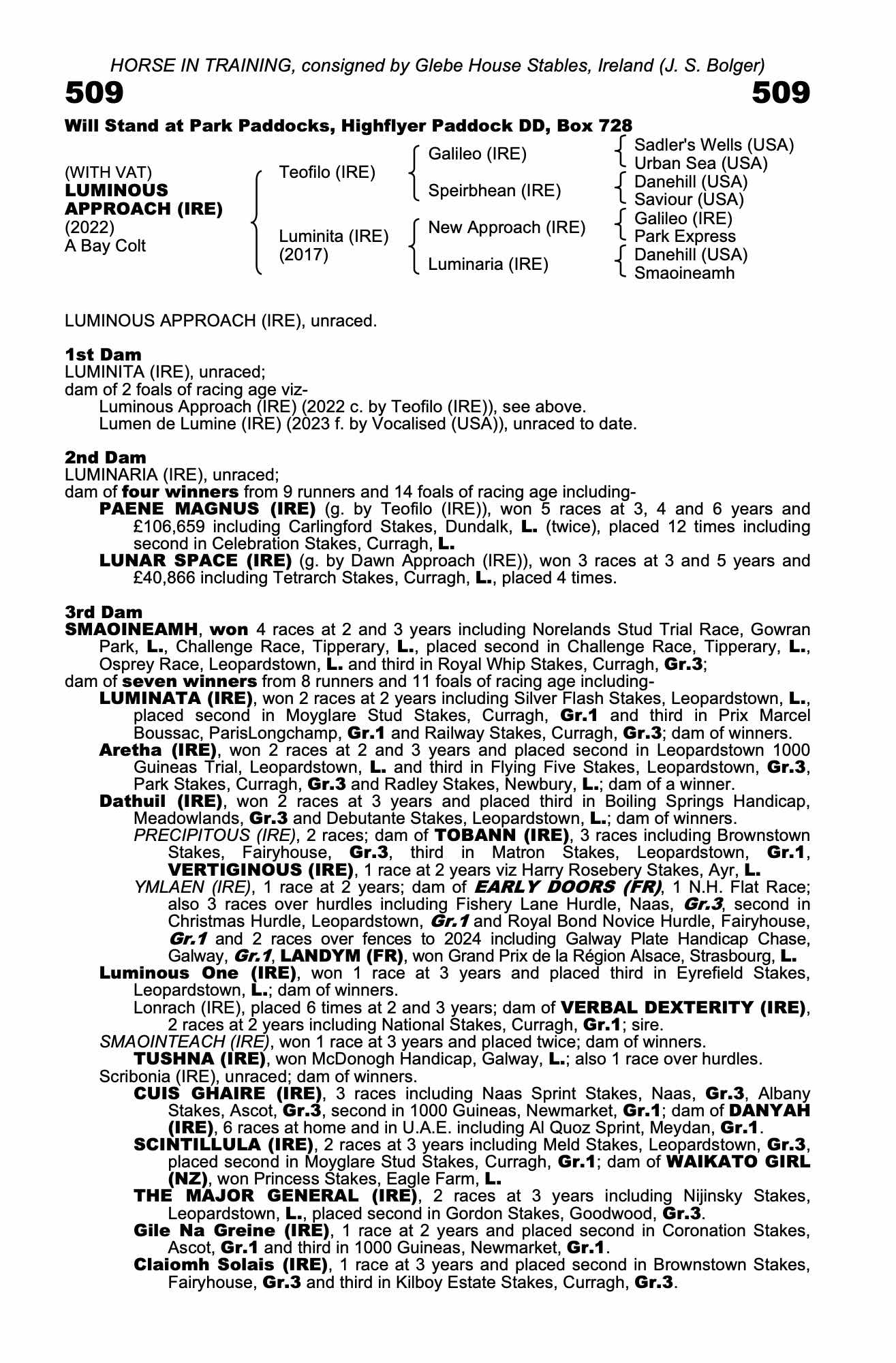 LUMINOUS APPROACH (IRE), ran once at 3 years, 2025.