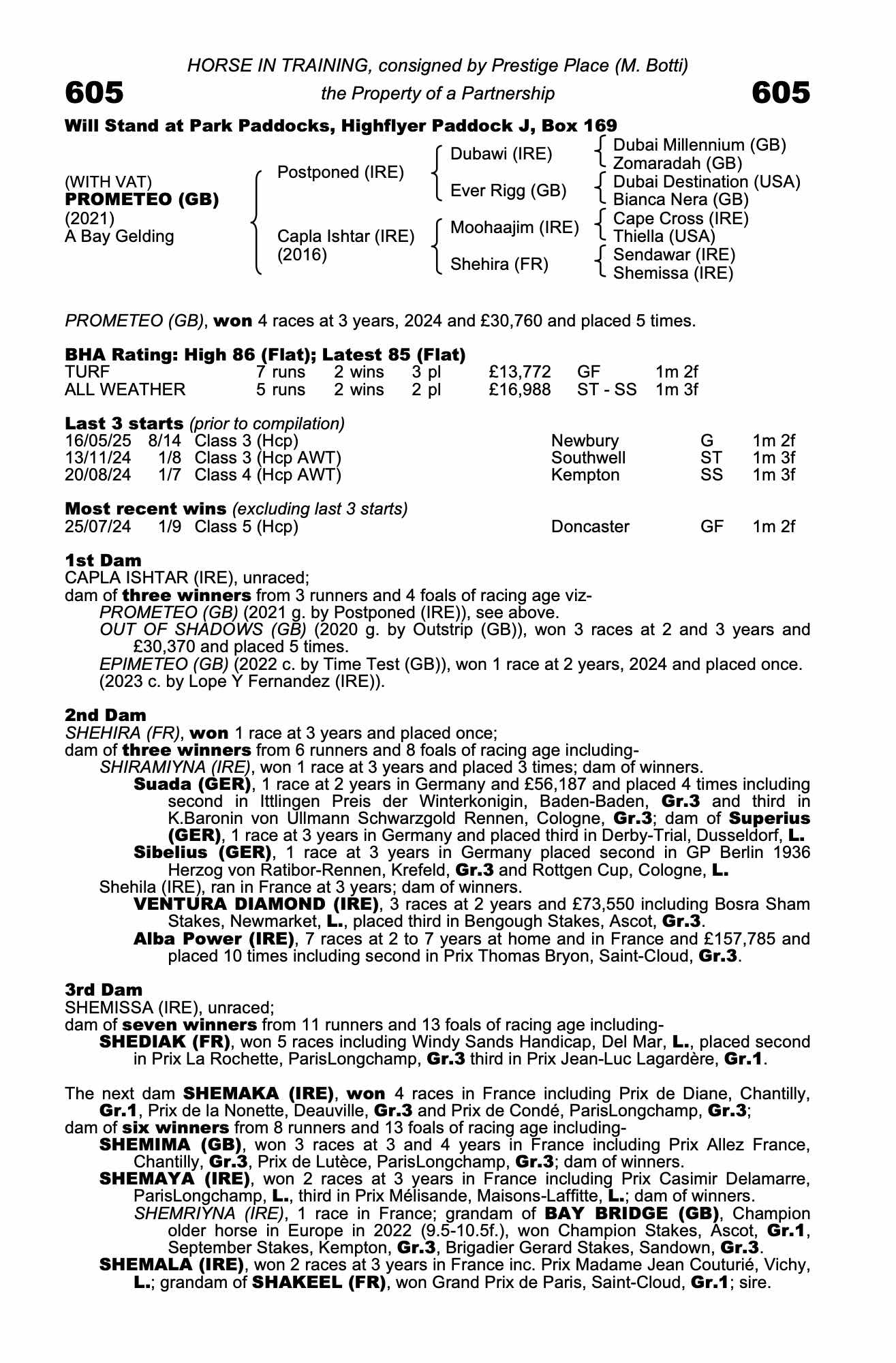 Online Sale - 5th June 2025 lot 55 Epimeteo (GB) (C. by Time Test (GB)), Prestige Place (M. Botti)=>Marco Bozzi Bloodstock 8,000 gns