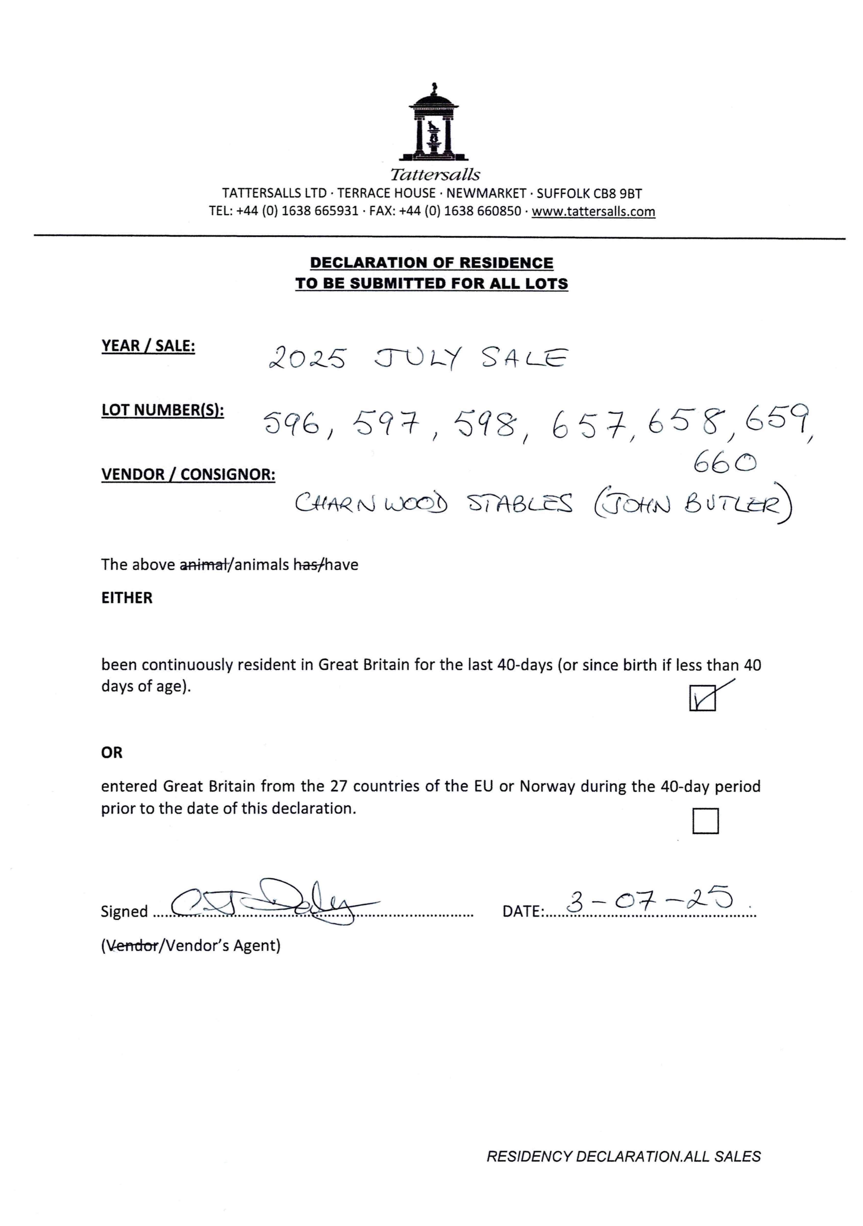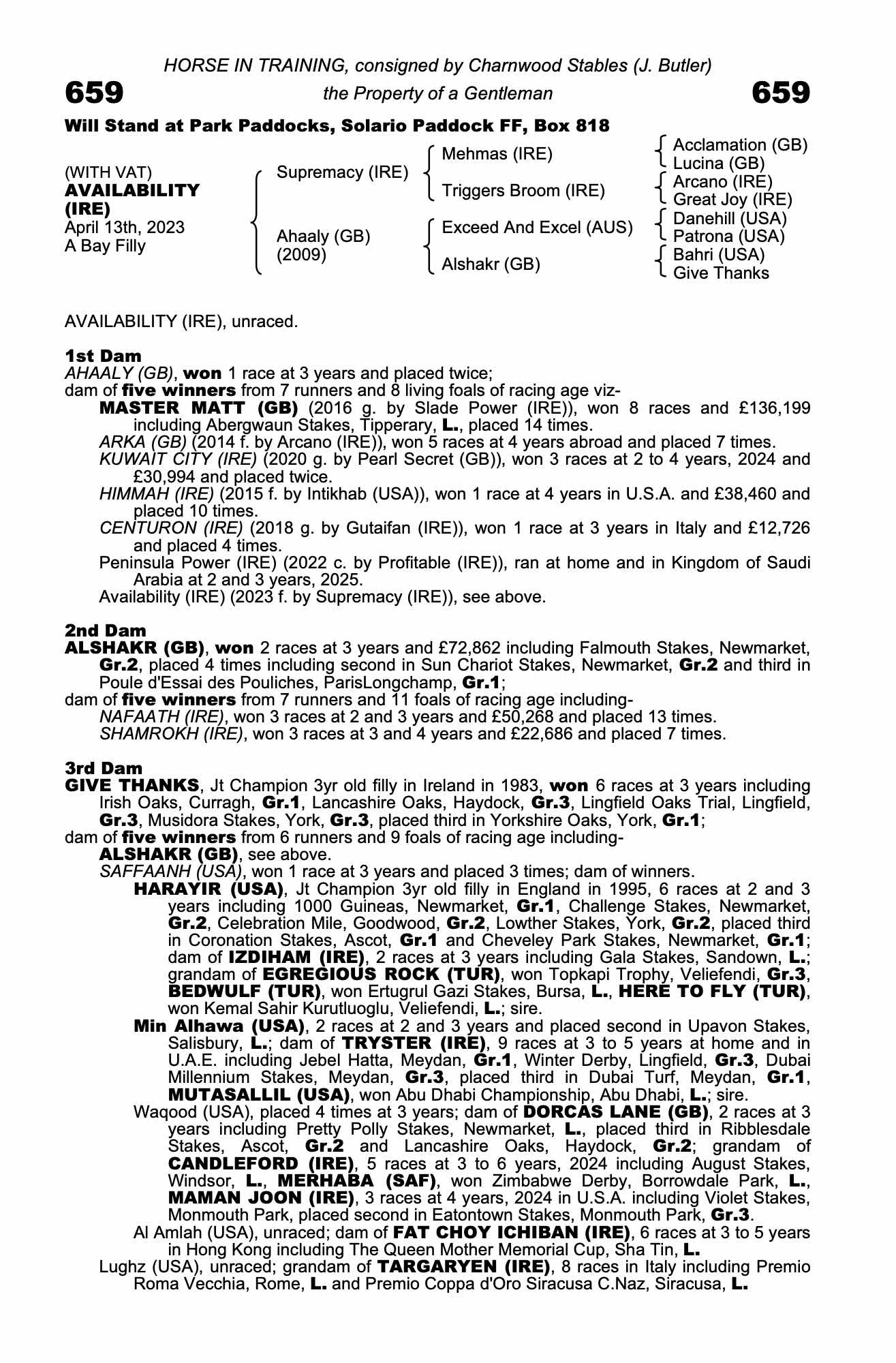 Consignor: Charnwood Stables (J. Butler)