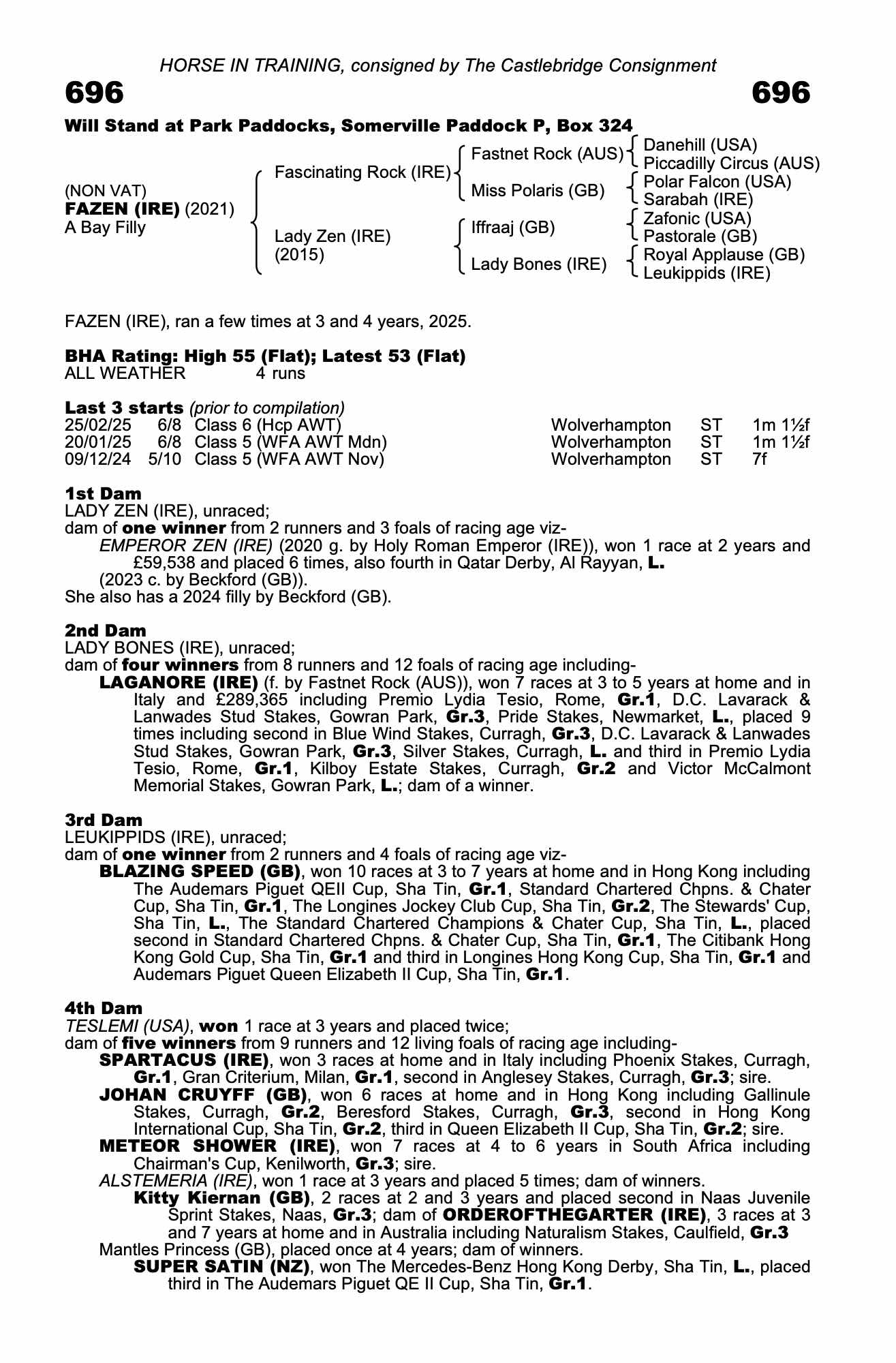 FAZEN (IRE), won 1 race at 4 years, 2025.