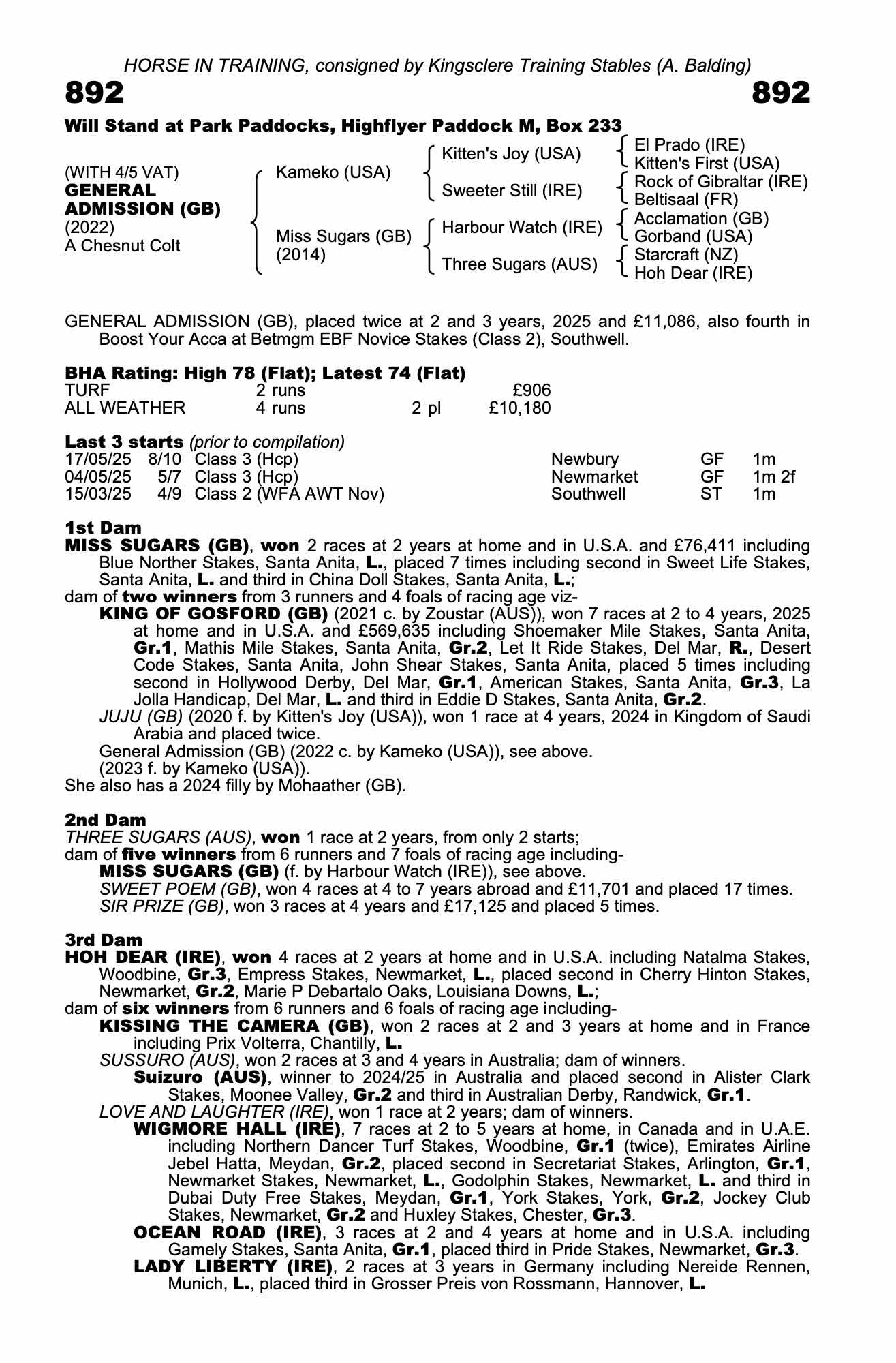 Consignor: Kingsclere Training Stables (A. Balding)