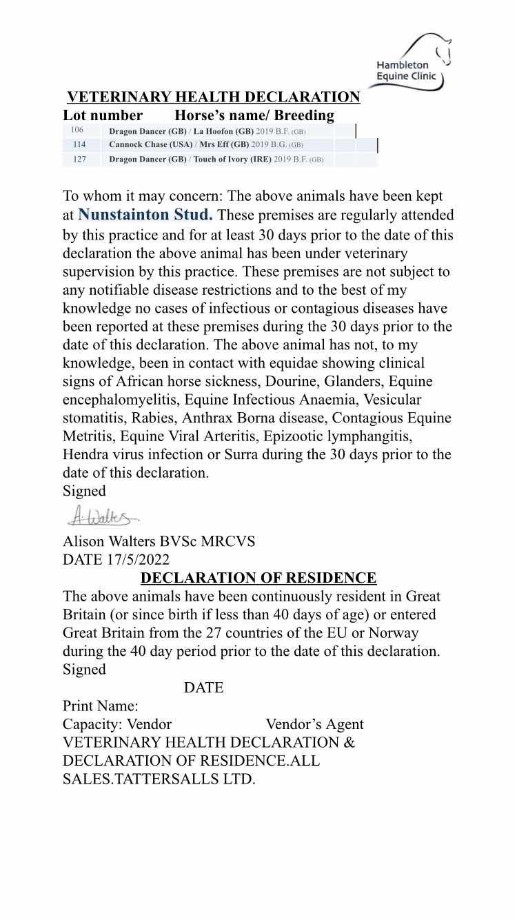 Consignor: Nunstainton Stud