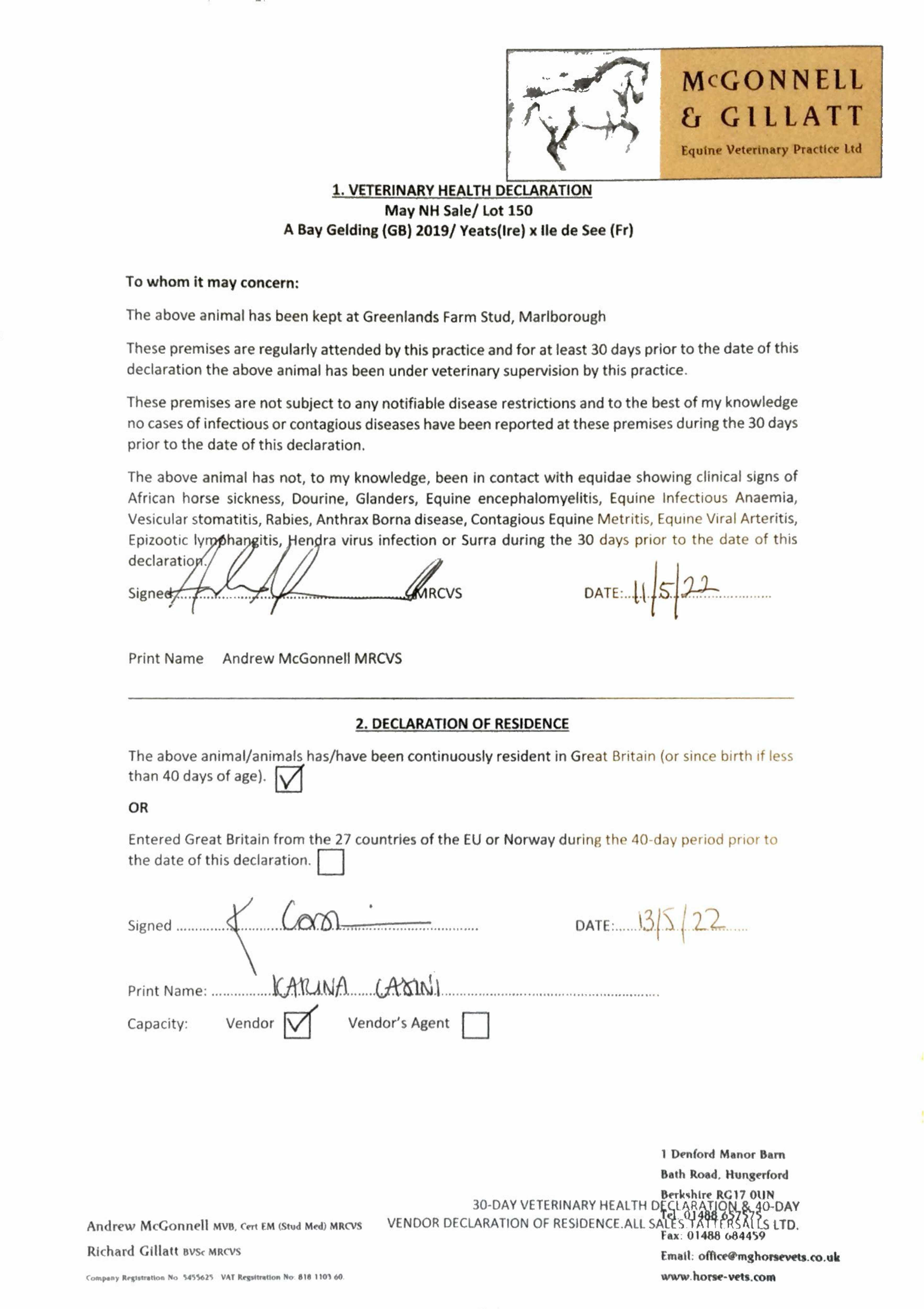Vet Certificate