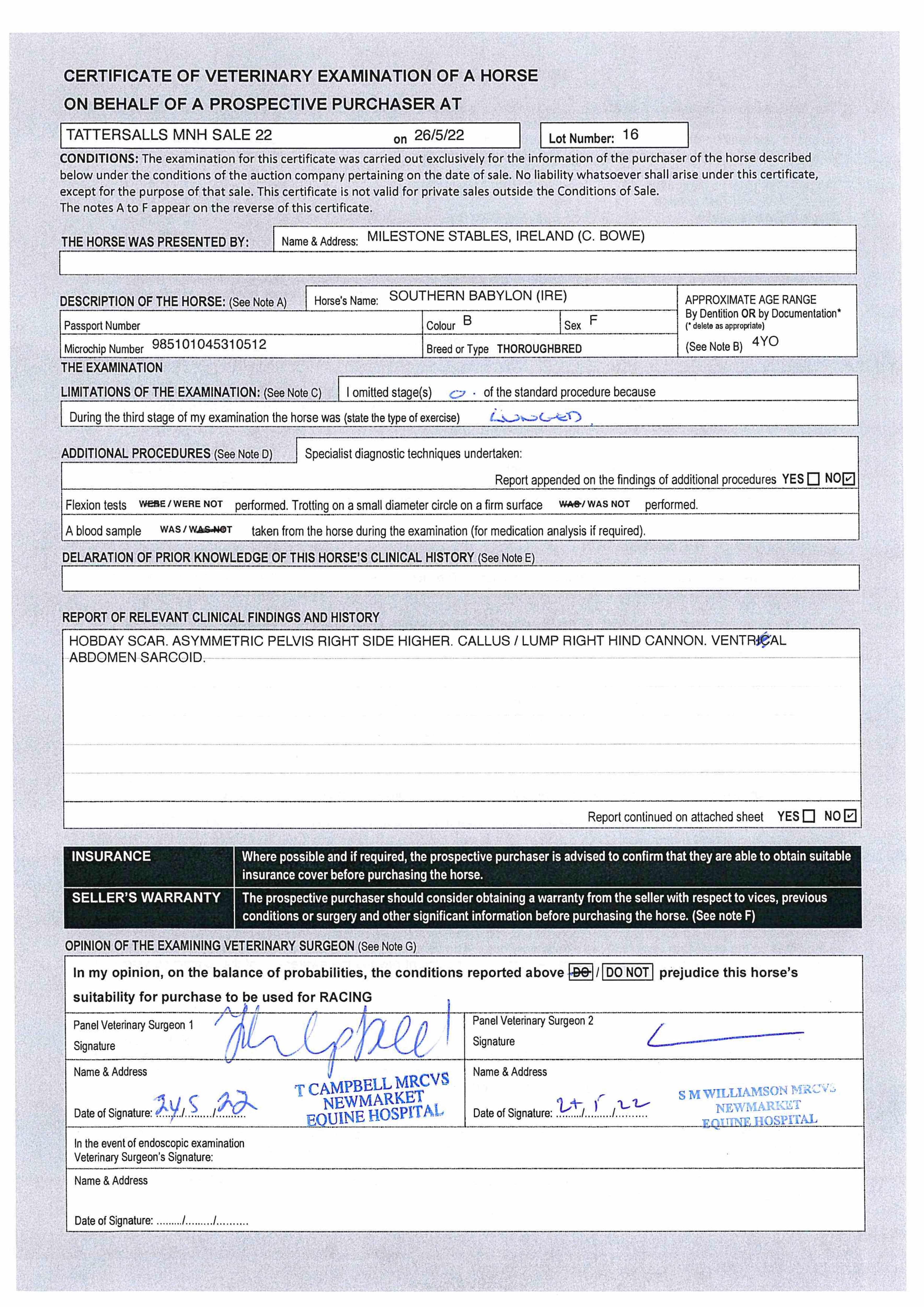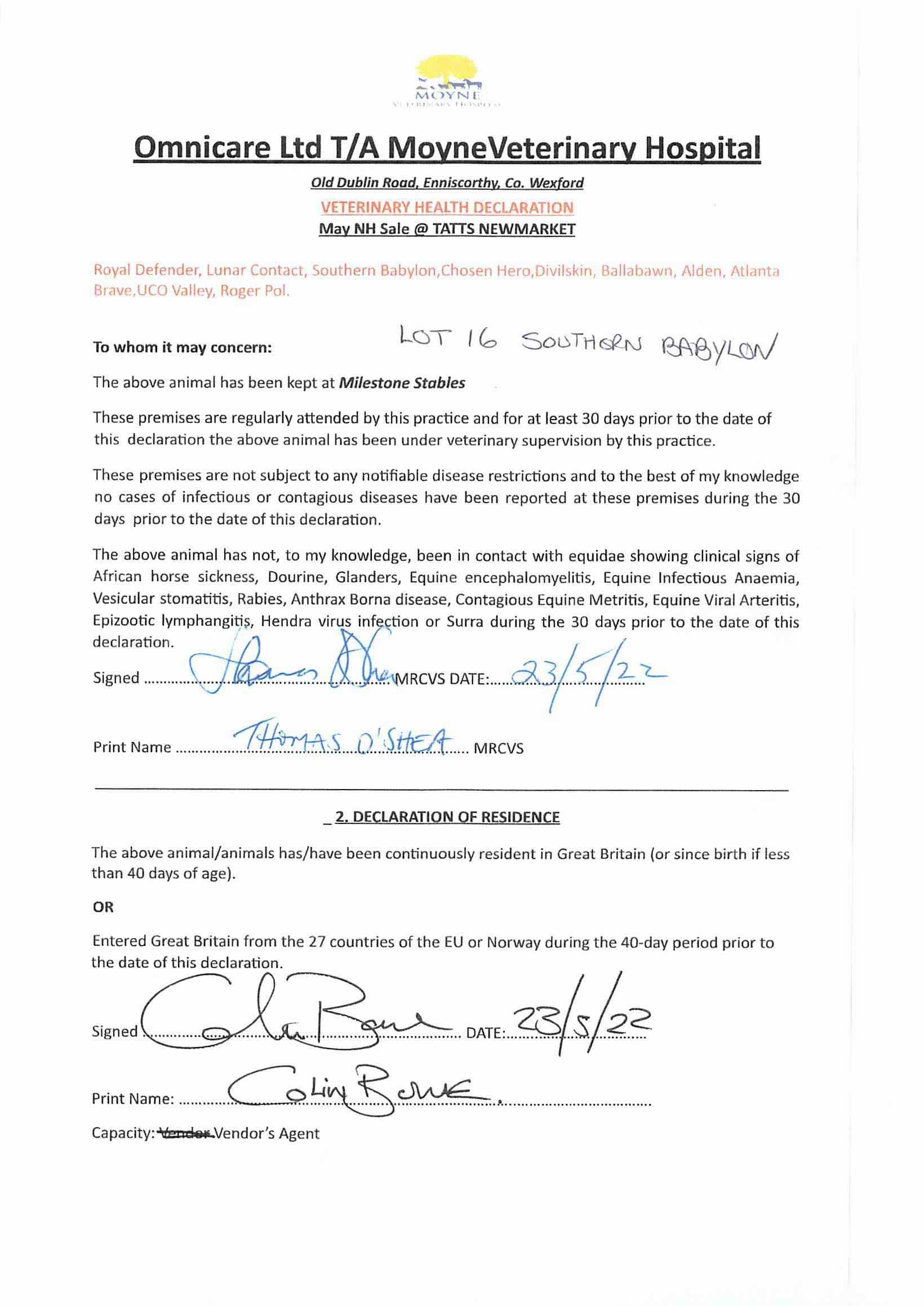 Consignor: Milestone Stables, Ireland (C. Bowe)