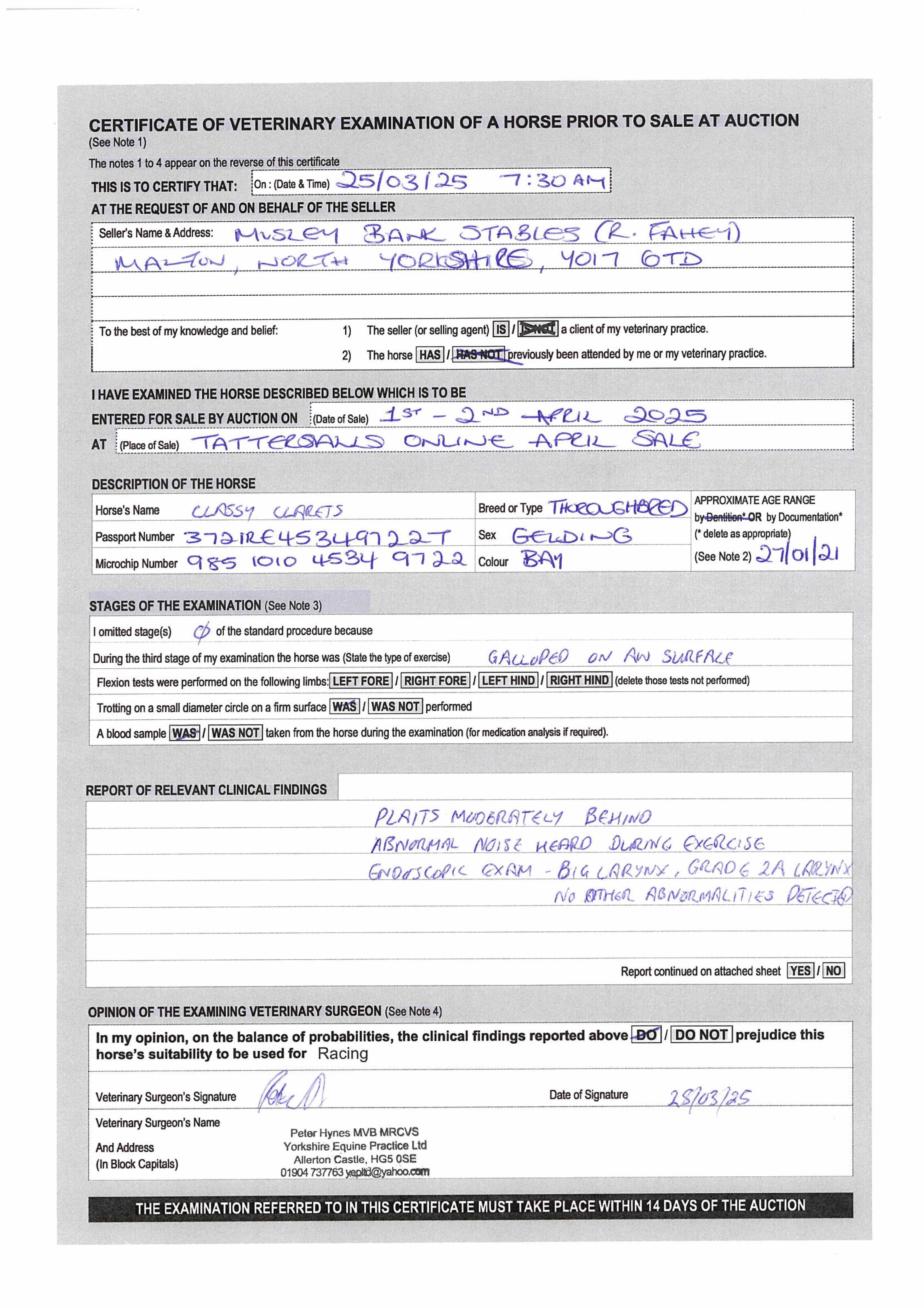 Monday 31 March:  Has run since publication of catalogue. 28/03/25 - finished 9th of 11 in 5f (Class 6) Handicap at Southwell. 30/03/25 - finished 13th of 17 in 5f (Class 5) Handicap at Doncaster.