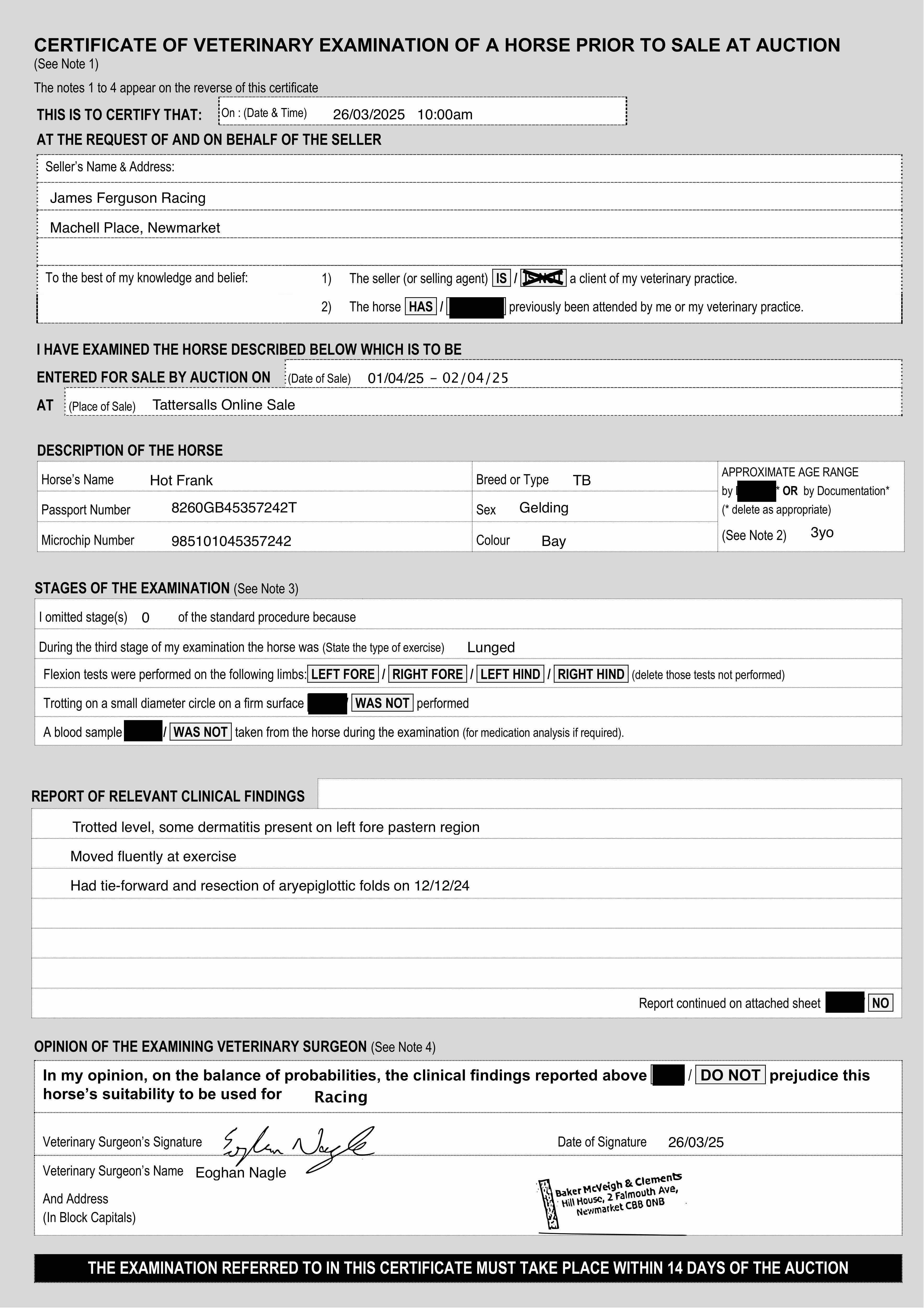 For time sensitive requests please call Tattersalls on +44(0)1638665931
