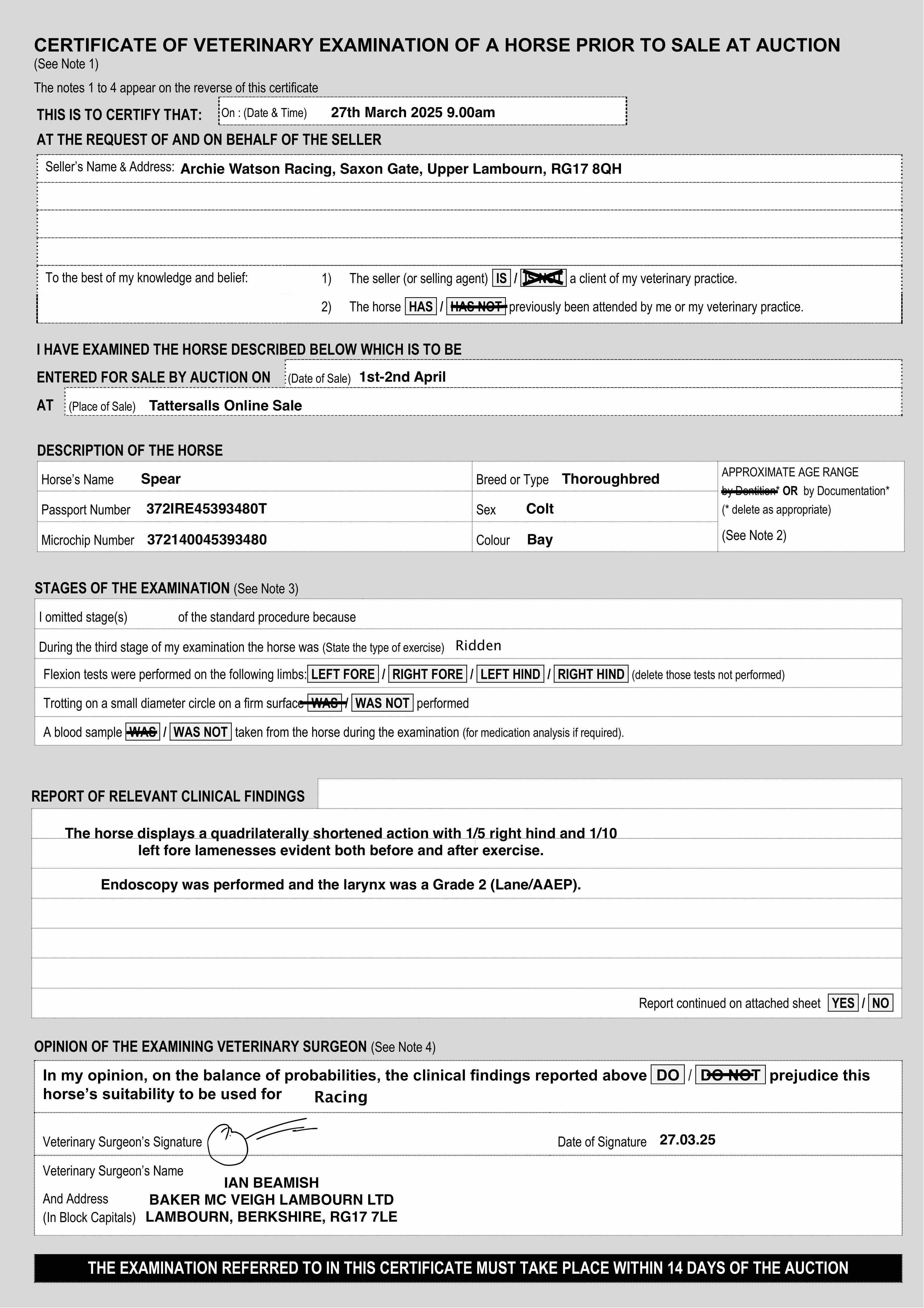 For time sensitive requests please call Tattersalls on +44(0)1638665931