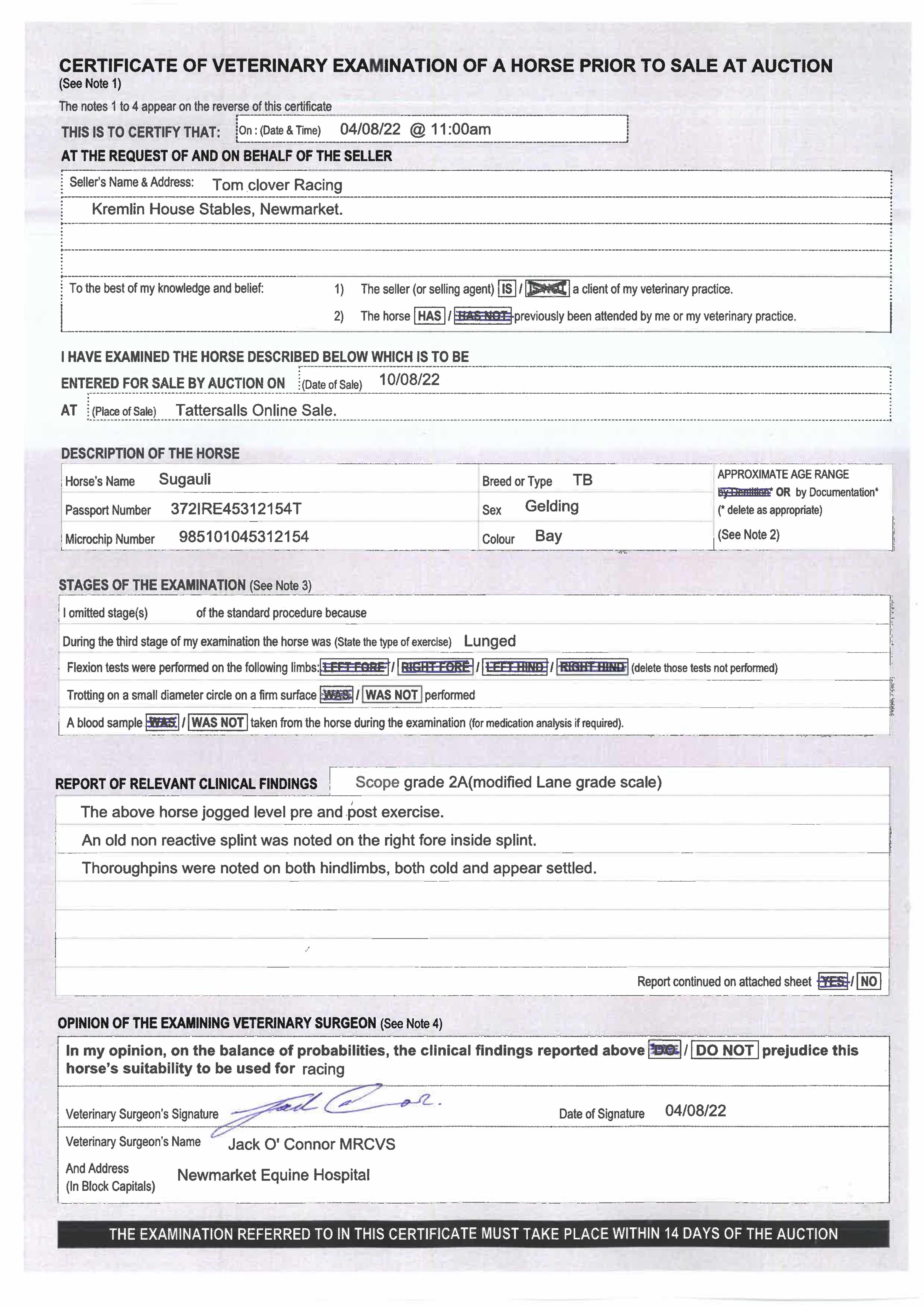 For time sensitive requests please call Tattersalls on +44(0)1638665931