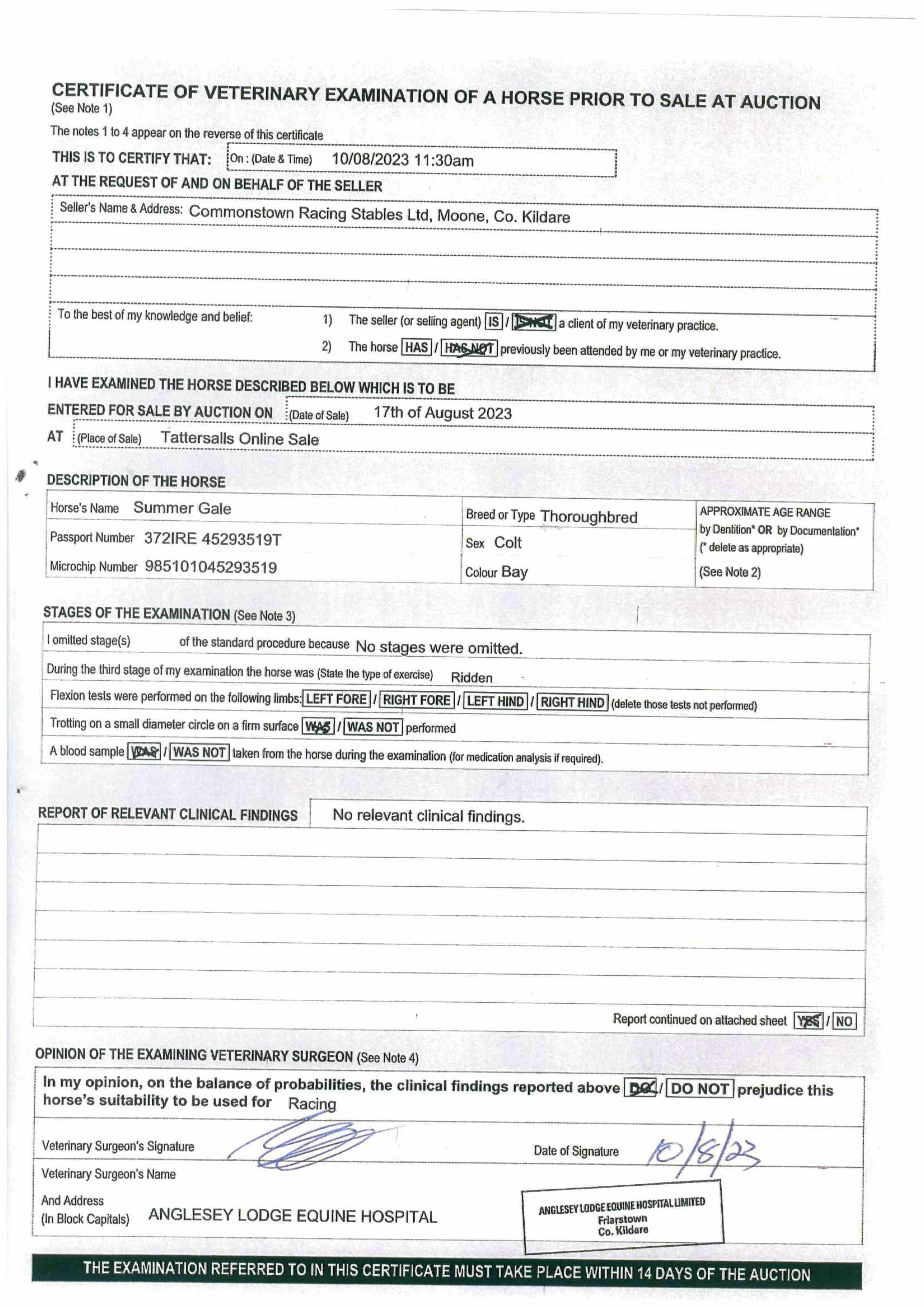 For time sensitive requests please call Tattersalls on +44(0)1638665931