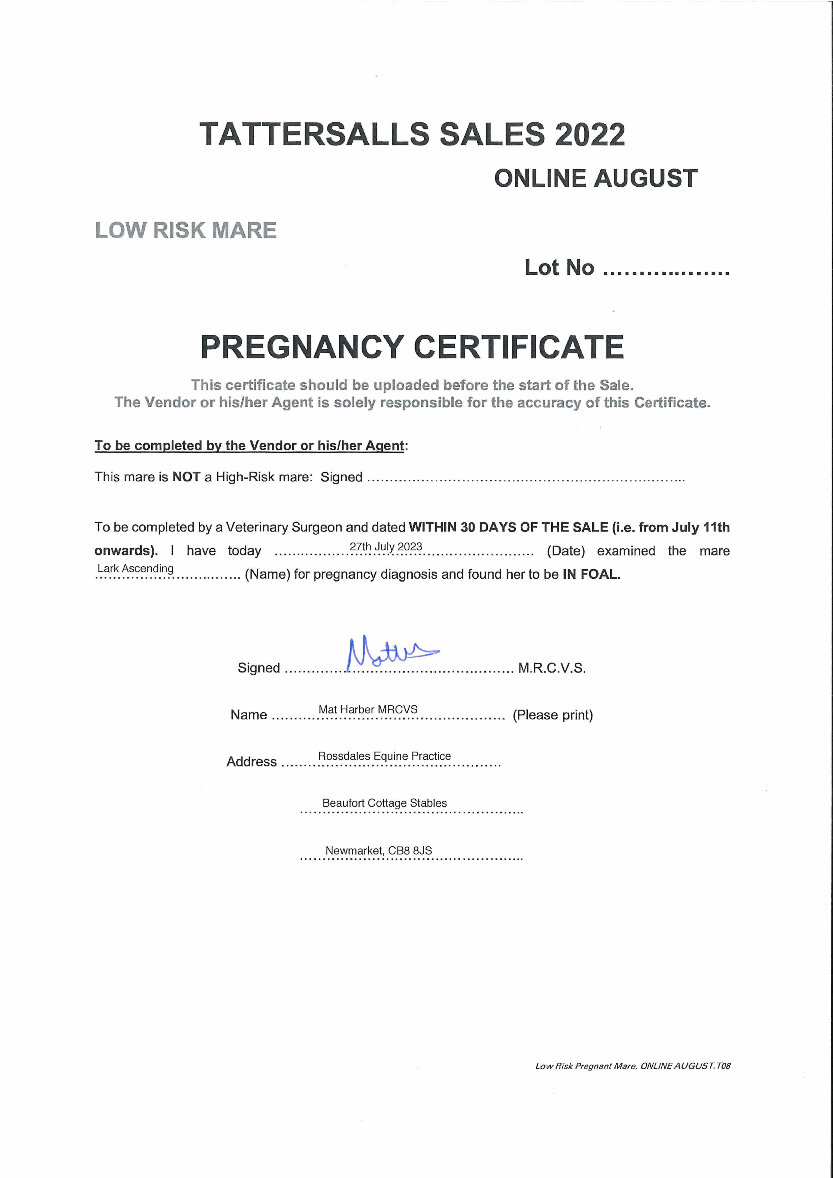 For time sensitive requests please call Tattersalls on +44(0)1638665931