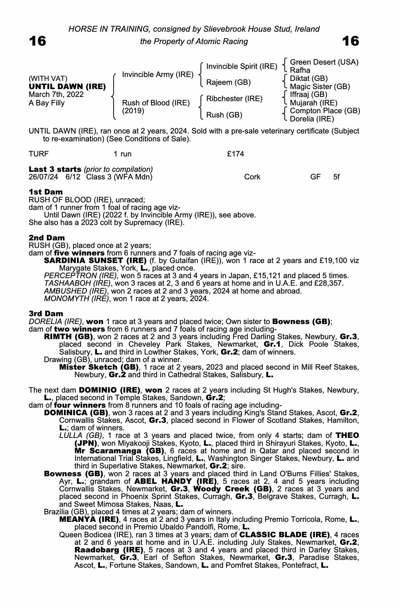 Vendor's Notes: Finished 6th on her only start beaten 4 1/4 lengths over 5 furlongs. Will improve and capable of winning an English maiden.