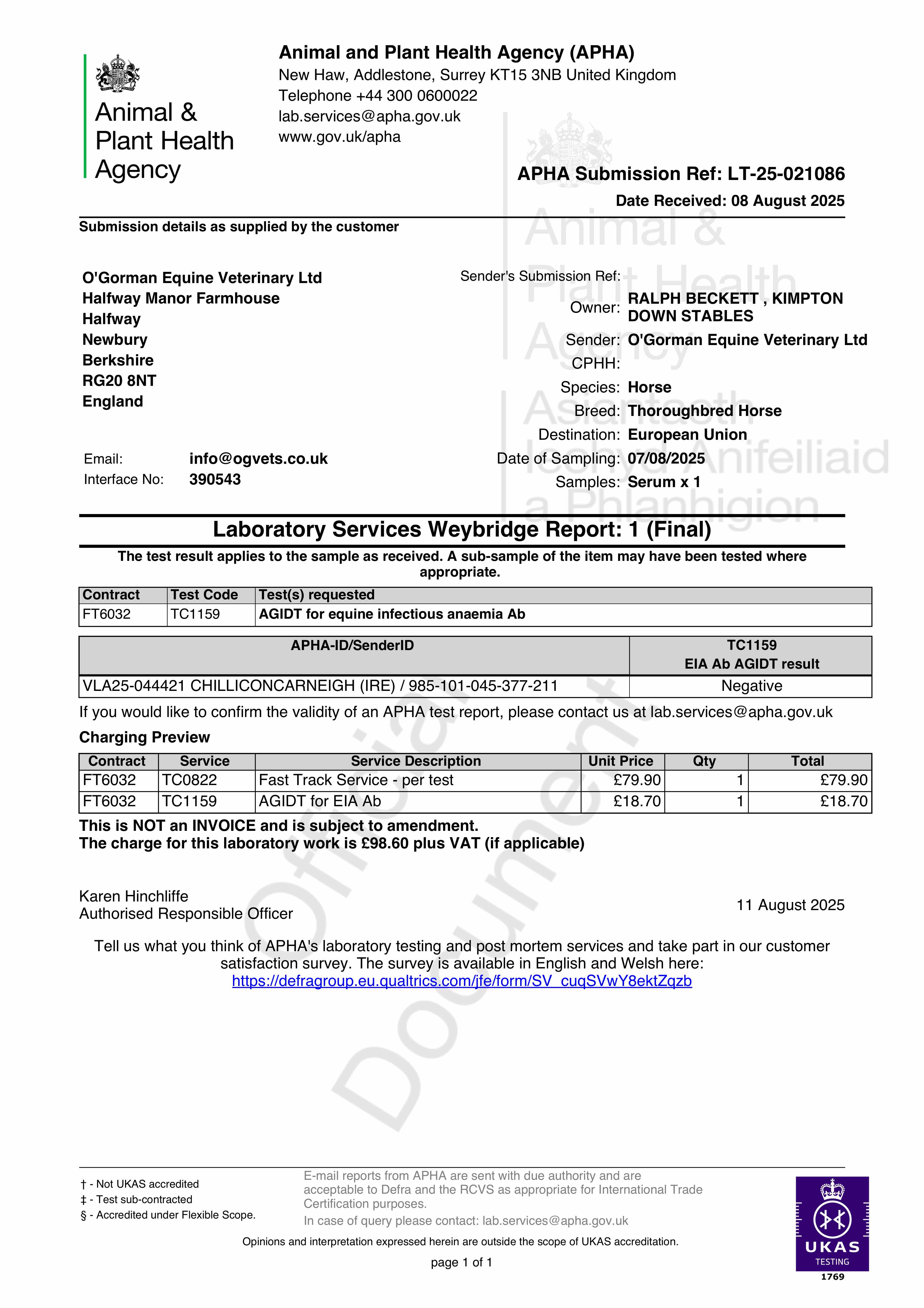 For time sensitive requests please call Tattersalls on +44(0)1638665931