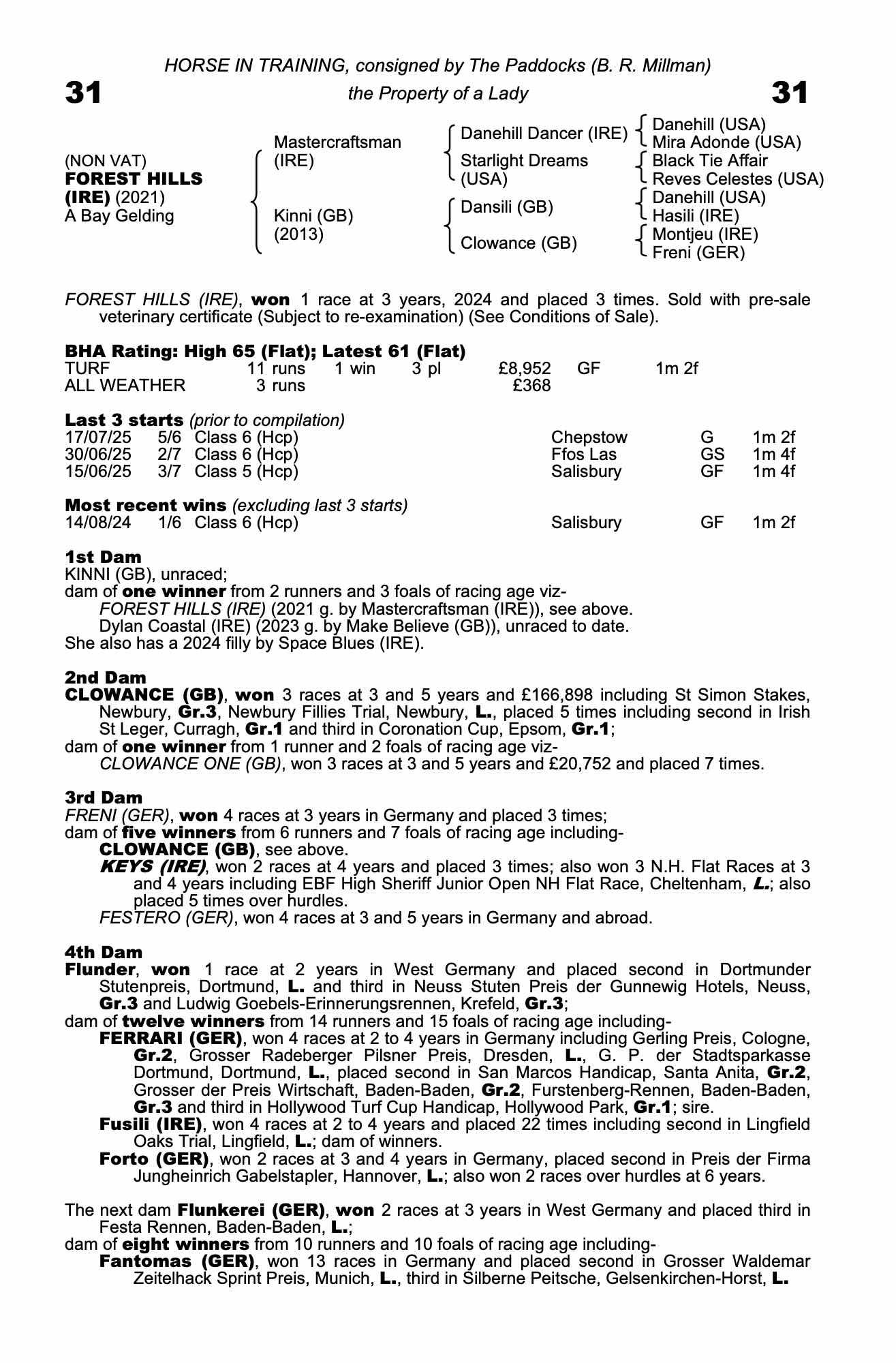 Vendor's Notes: Stays a mile and a half. Nice, big dual purpose horse. Please call Rod Millman on 07885 168447 for further information.