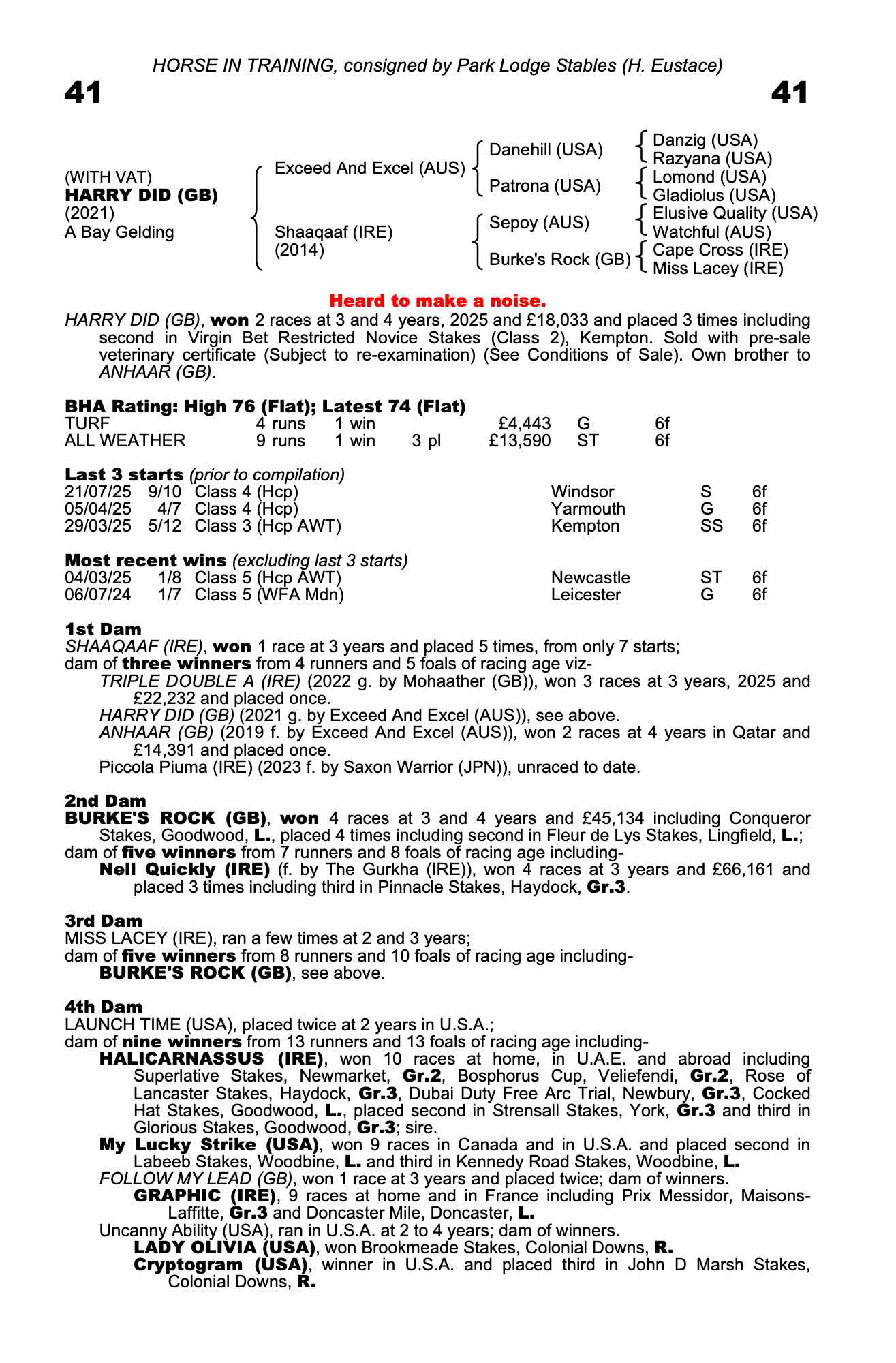 Consignor: Park Lodge Stables (H. Eustace)