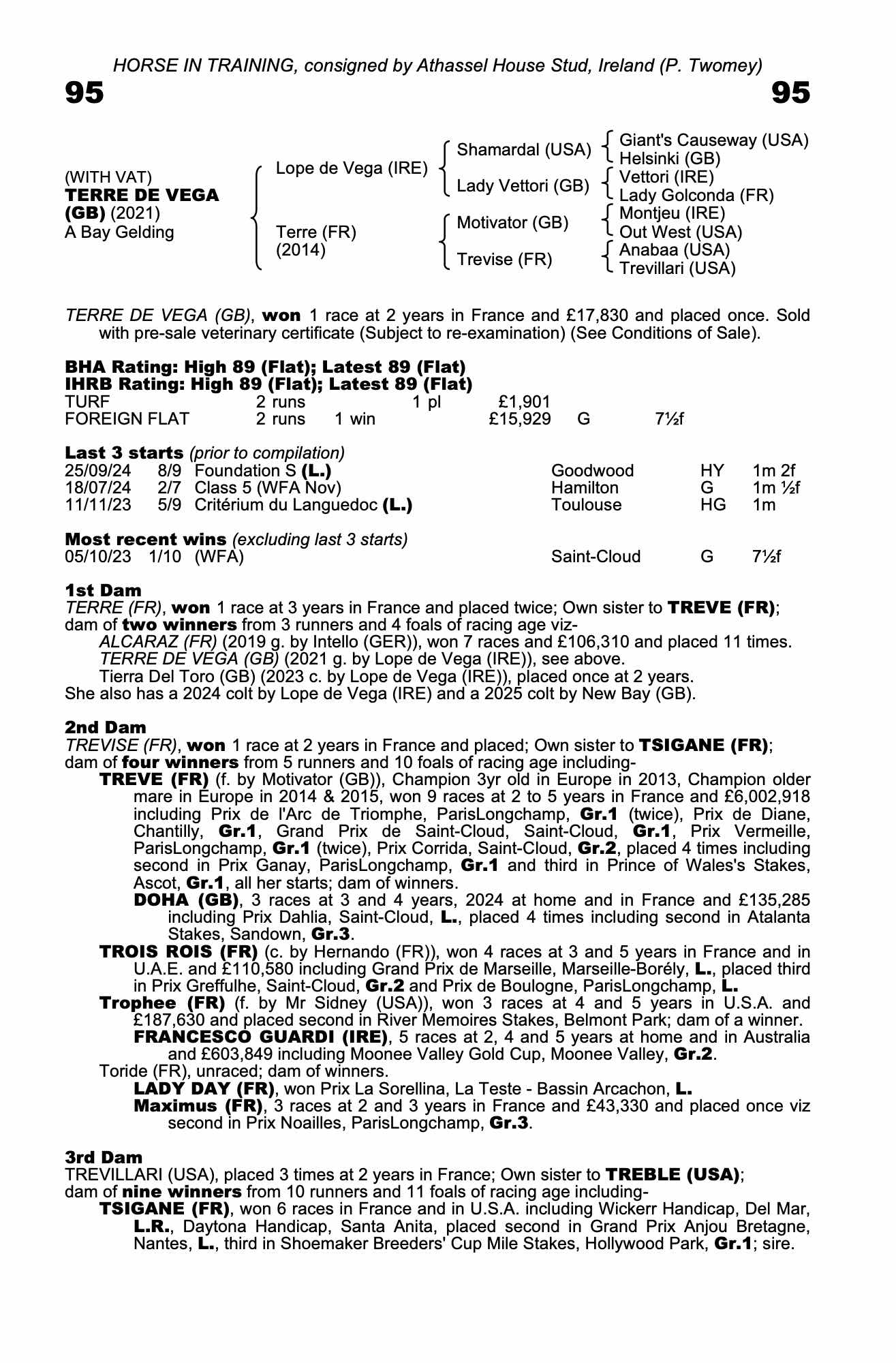 Vendor's Notes: Third foal out of a winning sister to dual Prix de l'Arc de Triomphe winner Treve. Half-brother to 9-10.5f winner Alcaraz.