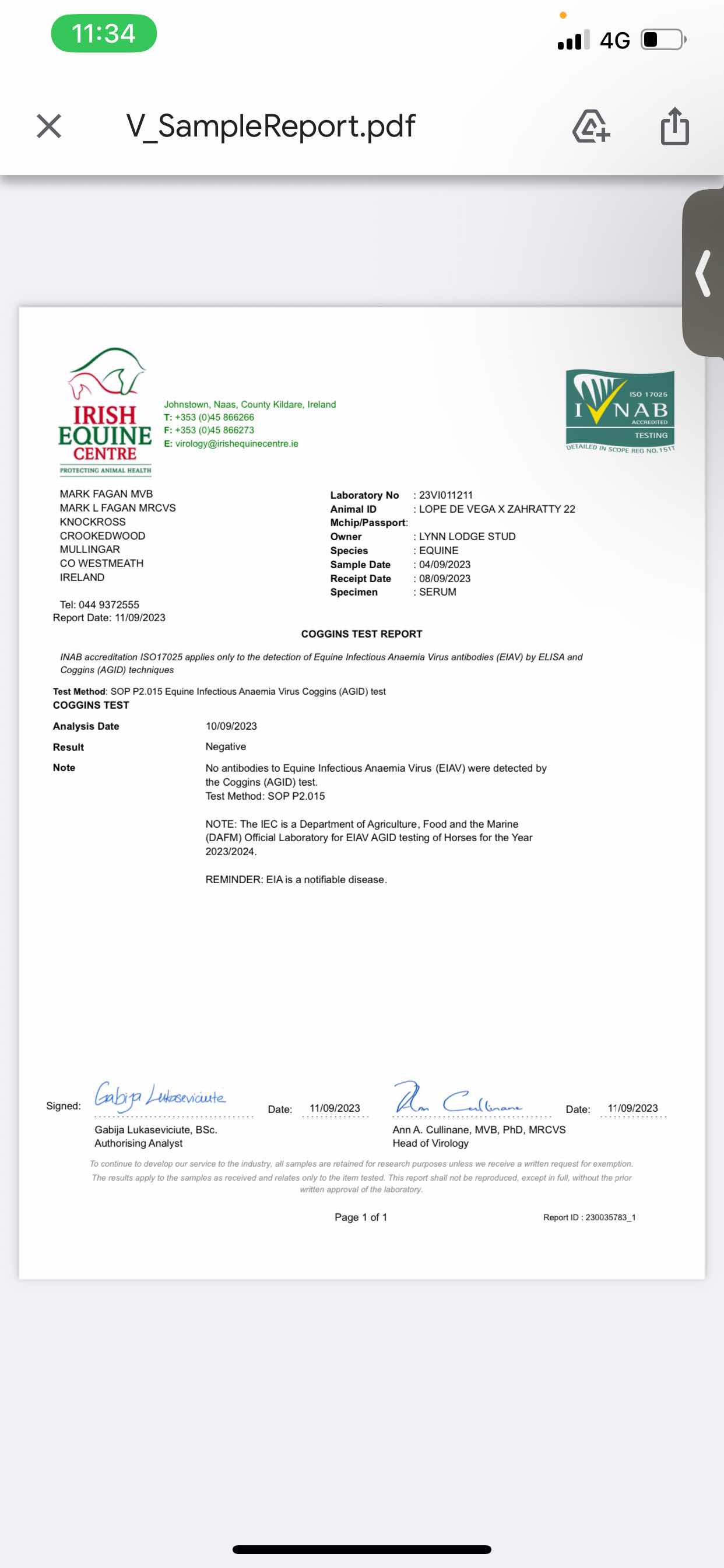 Consignor: Lynn Lodge Stud, Ireland