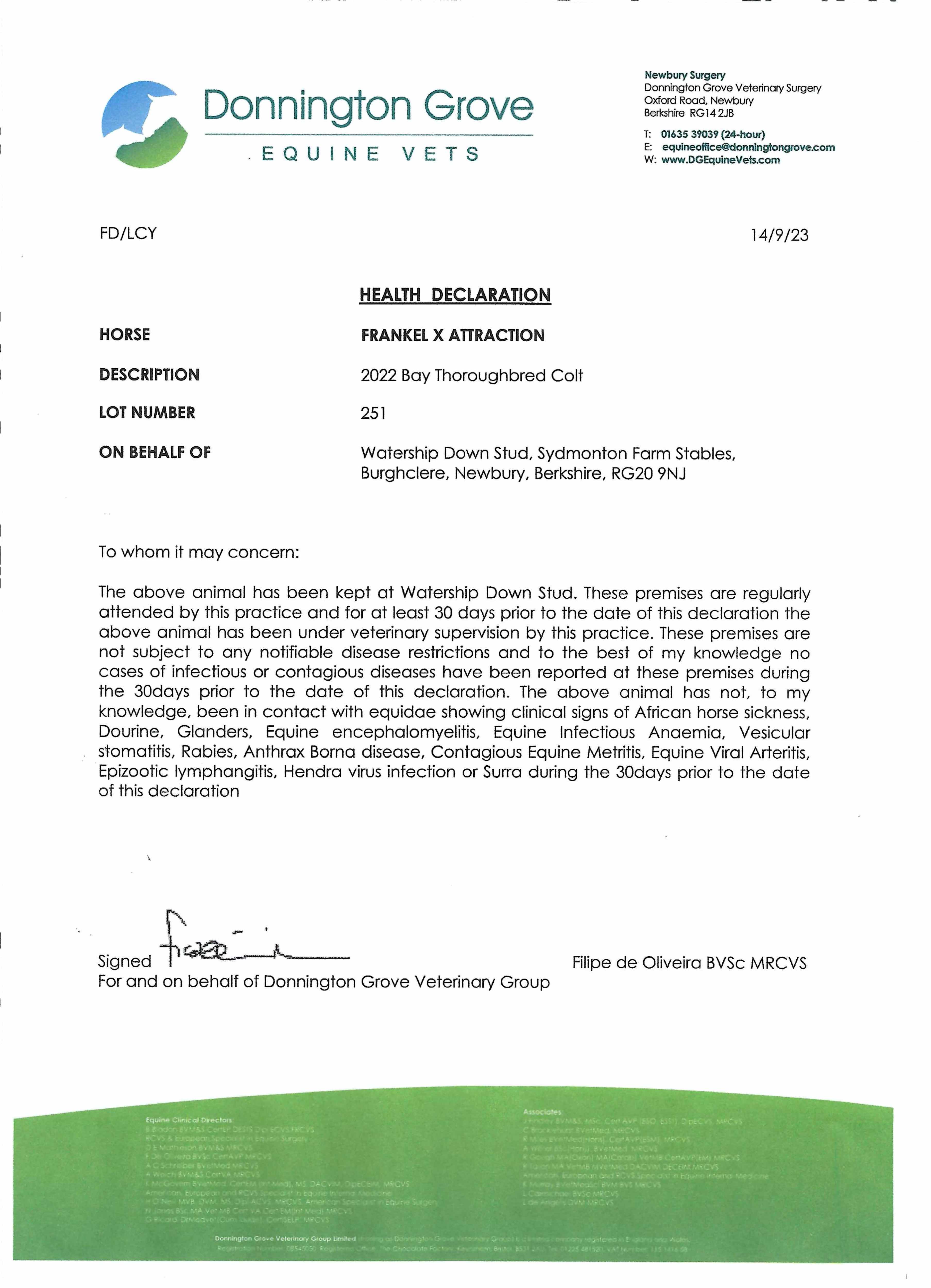 Consignor: Watership Down Stud