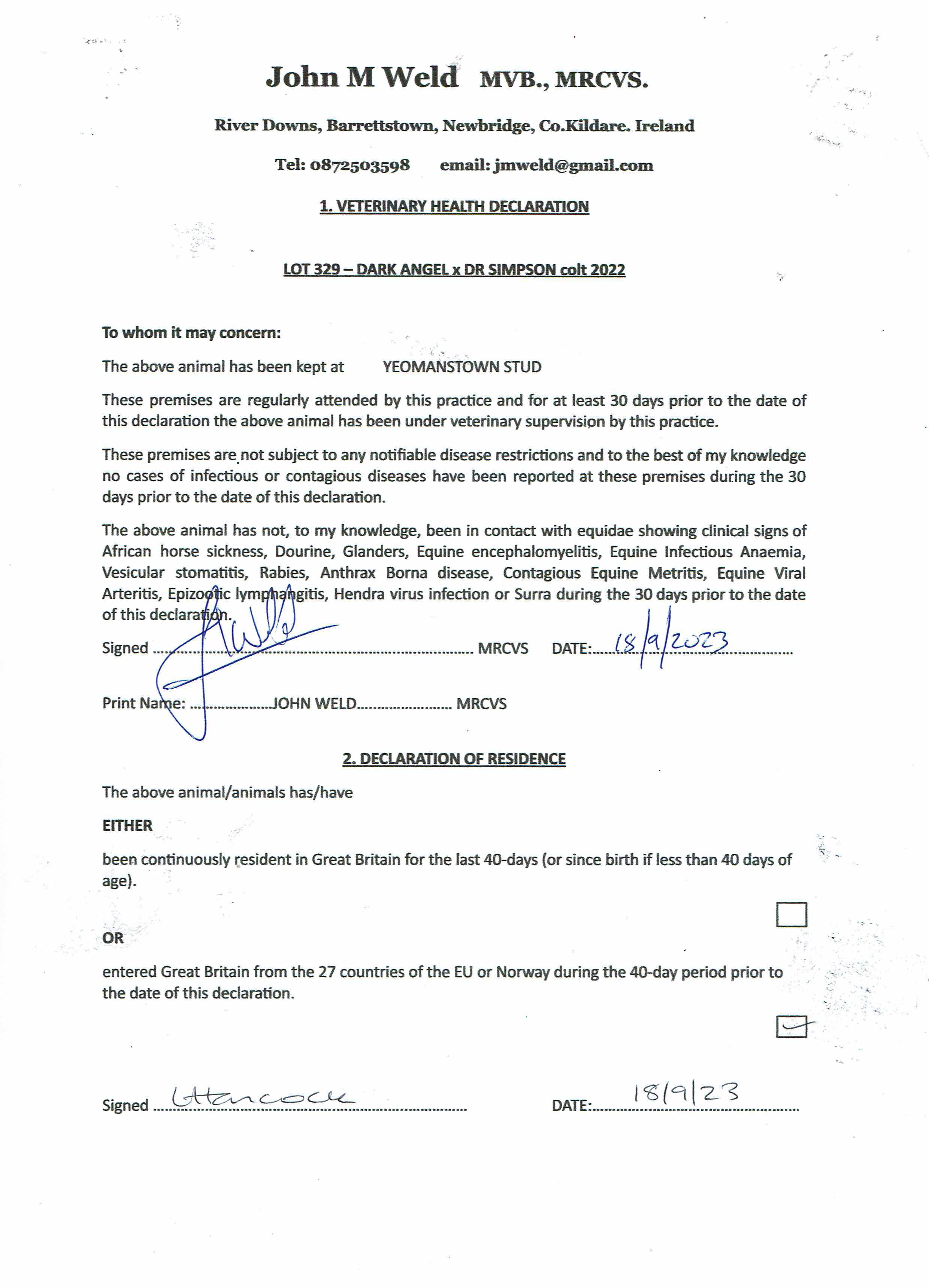 Consignor: Yeomanstown Stud, Ireland