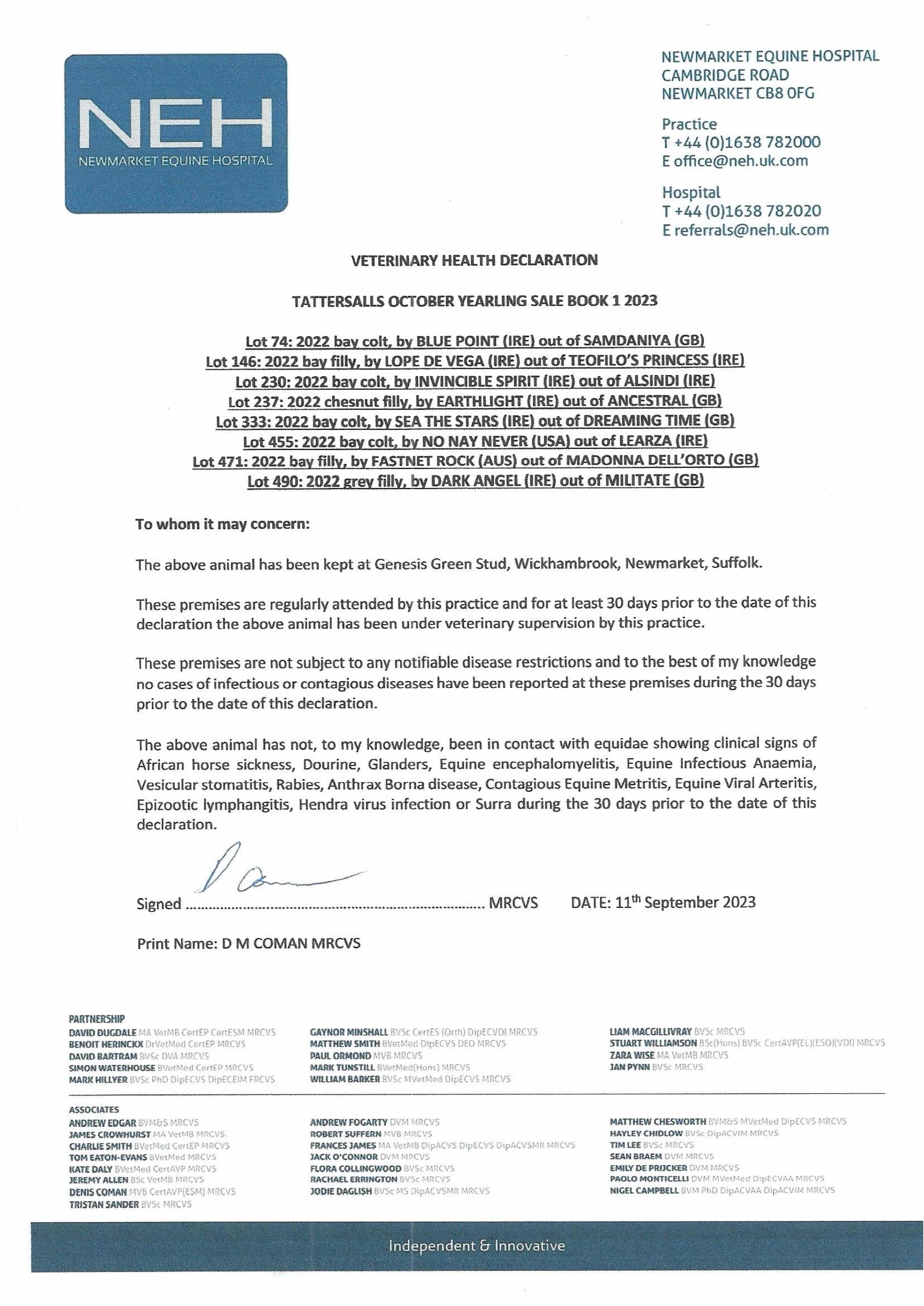 December Foal Sale 2023 lot 908 C. by Too Darn Hot (GB) 2023, Genesis Green Stud Ltd.=>Norris / Huntingdon 280,000 gns